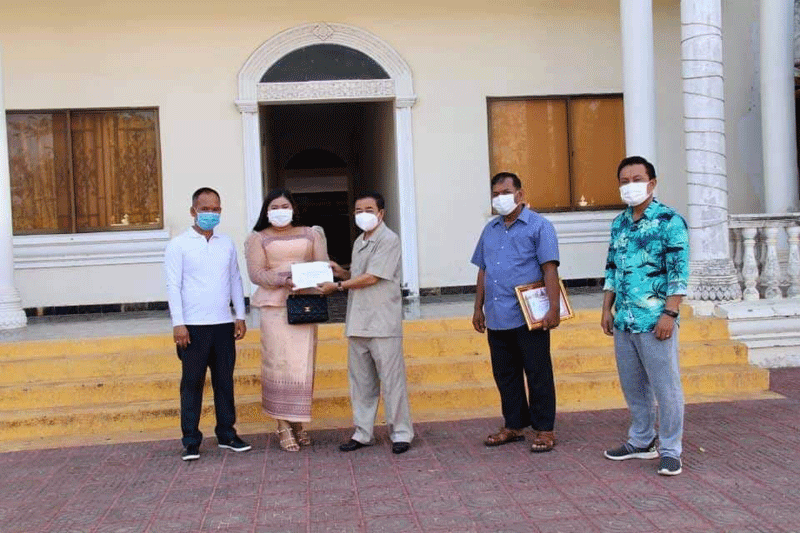 ខេត្តស្វាយរៀង៖នាព្រឹកថ្ងៃសៅ៥រោច ខែពិសាខ ឆ្នាំឆ្លូវ ត្រីស័ក ព.ស២៥៦៥ ត្រូវនឹងថ្ងៃទី០១ ខែឧសភា ឆ្នាំ២០២១នេះ ឯកឧត្ដម ម៉ែន វិបុល អភិបាល នៃគណៈអភិបាលខេត្តស្វាយរៀង បានអញ្ជើញទទួលថវិកាចំនួន៦,០០០ដុល្លា (ប្រាំមួយពាន់ដុល្លា) ពីលោកស្រី ឆោម និមល និងលោក ម៉ៅ ឡូយ តំណាងឲ្យលោកស្រី ប្រាក់ លីណា ព្រមទាំងក្រុមគ្រួសារនិងក្រុមបាល់ទាត់វេសឃ្លីន ឧបត្ថម្ភដល់រដ្ឋបាលខេត្តក្នុងការងារទប់ស្កាត់ការឆ្លង រាលដាលនៃជំងឺកូវីដ១៩ ។
