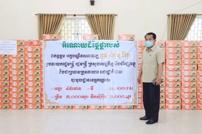 ខេត្តកណ្ដាល៖ ឯកឧត្តម អគ្គបណ្ឌិតសភាចារ្យ អូន ព័ន្ធមុនីរ័ត្ន ឧបនាយករដ្ឋមន្ត្រី រដ្ឋមន្ត្រីក្រសួង សេដ្ឋកិច្ច និងហិរញ្ញវត្ថុ និងជាប្រធានក្រុមការងាររាជរដ្ឋាភិបាលចុះជួយមូលដ្ឋានខេត្តកណ្ដាល បានឧបត្ថម្ភនូវ អង្ករចំនួន ៤៥ តោន មី ៣០០០ កេសតូច ទឹកស៊ីអ៊ីវ ៣០០០ យួរ និងត្រីខ ៣០០០ កេស ប្រគល់ជូនដល់រដ្ឋបាលស្រុកអង្គស្នួល ដើម្បីជួយឧបត្ថម្ភដល់ប្រជាពលរដ្ឋ ដែលរងផលប៉ះពាល់ ដោយជំងឺកូវីដ-១៩ ក្នុងព្រឹត្តិការណ៍សហគមន៍ ២០ កុម្ភៈ ពិសេសប្រជាពលរដ្ឋដែលកំពុងរស់នៅ ក្នុងតំបន់ក្រហម ស្ថិតក្នុងស្រុកអង្គស្នួល។ នៅរសៀលថ្ងៃទី១ ខែឧសភា ឆ្នាំ២០២១ ឯកឧត្តម គង់ សោភ័ណ្ឌ អភិបាលខេត្តកណ្ដាល អញ្ជើញចុះរៀបចំនូវសម្ភារៈ ជាគ្រឿងឧបភោគបរិភោគ ដែលជាអំណោយដ៏ថ្លៃថ្លារបស់ ឯកឧត្តម អគ្គបណ្ឌិតសភាចារ្យ អូន ព័ន្ធមុនីរ័ត្ន ឧបនាយករដ្ឋមន្ត្រី រដ្ឋមន្ត្រីក្រសួងសេដ្ឋកិច្ច និងហិរញ្ញវត្ថុ និងជាប្រធានក្រុមការងាររាជរដ្ឋាភិបាលចុះជួយ មូលដ្ឋាន ខេត្តកណ្ដាល នៅស្រុកអង្គស្នួល។ មានប្រសាសន៍ឱកាសនោះ ឯកឧត្តម គង់ សោភ័ណ្ឌ អភិបាលខេត្តកណ្ដាល បានណែនាំដល់អាជ្ញាធរស្រុកអង្គស្នួល ត្រូវធ្វើការស្រង់ស្ថិតិប្រជាពលរដ្ឋ ដែលរងផលប៉ះពាល់ដោយការឆ្លងរាលដាលនៃជំងឺកូវីដ-១៩ និងកំពុងមានការខ្វះខាតនូវស្បៀង អាហារប្រចាំថ្ងៃ នៅក្នុងមូលដ្ឋានរបស់ខ្លួន ពិសេសប្រជាពលរដ្ឋដែលកំពុងស្ថិតនៅតំបន់ក្រហម ដែលតម្រូវឱ្យអាជ្ញាធរស្រុក ខេត្ត ធ្វើការឧបត្ថម្ភនូវស្បៀងអាហារជូនពួកគាត់ឱ្យបានទាន់ពេលវេលា និងតាមតម្រូវការចាំបាច់របស់ពួកគាត់ផងដែរ ធ្វើយ៉ាងណាមិនត្រូវឱ្យប្រជាពលរដ្ឋណាម្នាក់ ស្លាប់ ដោយសារអត់ស្បៀងអាហារនោះឡើយ។ សូមបញ្ជាក់ផងដែរថា ស្រុកអង្គស្នួលគឺជាស្រុកមួយ ដែលត្រូវបានរដ្ឋបាលខេត្តកណ្ដាល បានសម្រេចកំណត់នៅតំបន់ក្រហម ចំនួន ៤ភូមិ តំបន់លឿងទុំចំនួន ៣ភូមិ ស្ថិតនៅឃុំបែកចាន និងតំបន់លឿងចំនួន ១ភូមិ ស្ថិតនៅឃុំពើក ស្រុកអង្គស្នួល ខេត្តកណ្ដាល។ គិតត្រឹមថ្ងៃទី៣០ ខែមេសា ឆ្នាំ២០២១ ទូទាំងស្រុកអង្គស្នួលមាន អ្នកវិជ្ជមានមេរោគកូវីដ-១៩ ចំនួន ៣៥៥នាក់ បានព្យាបាលជាសះស្បើយចំនួន ៦នាក់ កំពុងធ្វើចត្តាឡីស័ក នៅមណ្ឌលចត្តាឡីស័កចំនួន ២៦៦នាក់ និងកំពុងធ្វើចត្តាឡីស័កនៅផ្ទះចំនួន ៤.៧៦១នាក់ផងដែរ៕ ភាវុន