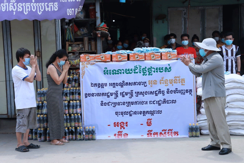 ខេត្តកណ្ដាល៖ ឯកឧត្តម គង់ សោភ័ណ្ឌ អភិបាល នៃគណៈអភិបាលខេត្តកណ្ដាល នៅព្រឹកថ្ងៃទី៣ ខែឧសភា ឆ្នាំ២០២១ បាននាំយកនូវស្បៀង របស់ឯកឧត្តម អគ្គបណ្ឌិតសភាចារ្យ អូន ព័ន្ធមុនីរ័ត្ន ឧបនាយករដ្ឋមន្ត្រី រដ្ឋមន្ត្រីក្រសួងសេដ្ឋកិច្ច និងហិរញ្ញវត្ថុ និងជាប្រធានក្រុមការងារ រាជរដ្ឋាភិបាលចុះជួយមូលដ្ឋានខេត្តកណ្ដាល ជូនដល់ប្រជាពលរដ្ឋ ចំនួន៣៧៥៦គ្រួសារ ស្ថិតក្នុងតំបន់ក្រហម ចំនួន ៤ភូមិក្នុងឃុំបែកចាន ស្រុកអង្គស្នួល ខេត្តកណ្ដាល។