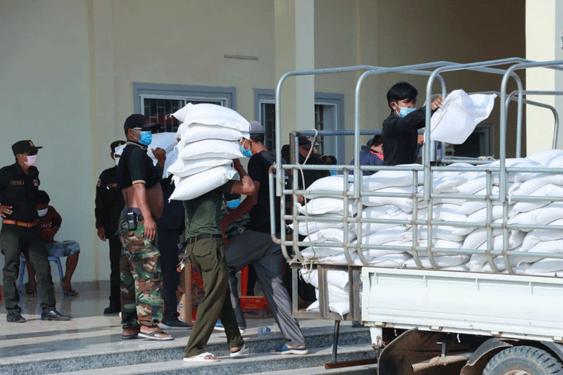 ស្បៀងដែលត្រូវបានផ្ដល់ជូនប្រជាពលរដ្ឋទាំង ៣៧៥៦គ្រួសារ ដោយក្នុងមួយគ្រួសារទទួលបាន អង្ករ ១៥ គីឡូក្រាម មី ១ កេស ត្រីខ ១ យួរ ទឹកស៊ីអ៊ីវ ១ យួរ និងម៉ាស់ ១ ដុំ។
