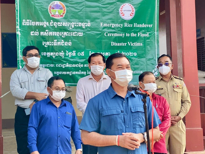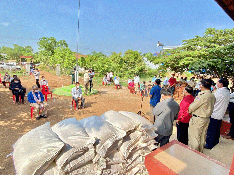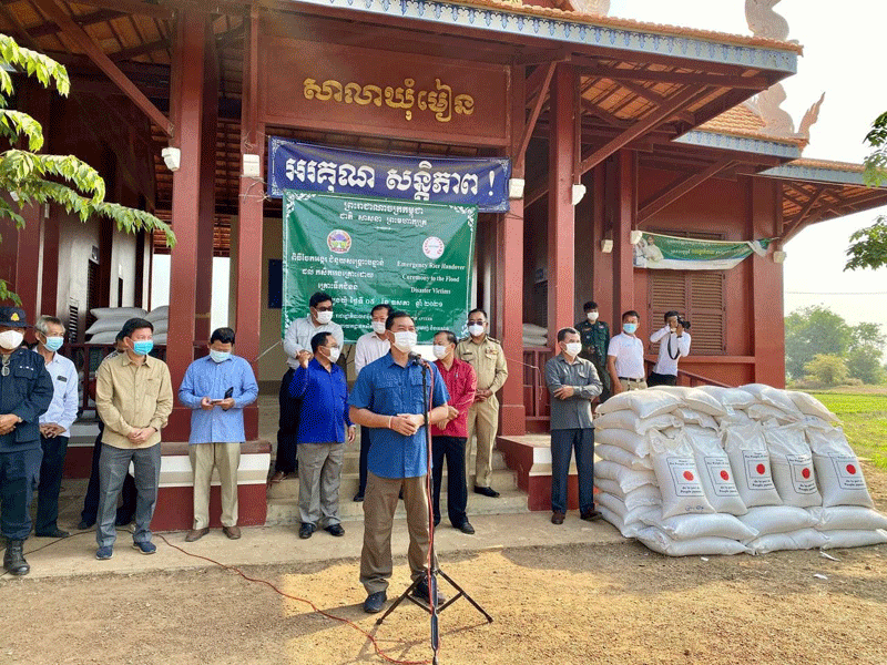 ត្បូងឃ្មុំ : ឯកឧត្តម ជាម ច័ន្ទសោភ័ណ អភិបាលខេត្តត្បូងឃ្មុំ អមដំណើរ ដោយ មន្ត្រី ពាក់ព័ន្ធ និង អាជ្ញាធរ មូលដ្ឋាន នៅថ្ងៃទី៥ ខែឧសភា ឆ្នាំ២០២១ បានអញ្ជើញចុះចែកអង្ករជំនួយសង្គ្រោះ បន្ទាន់របស់រាជរដ្ឋាភិបាលជប៉ុន ចំនួន៩តោន ដល់ប្រជាពលរដ្ឋដែលរងគ្រោះដោយគ្រោះធម្មជាតិ ៣០០គ្រួសារ ក្នុងមូលដ្ឋានស្រុកអូររាំងឪ ព្រមទាំងផ្តល់ថវិការលើកទឹកចិត្តដល់ក្រុមប្រឹក្សាឃុំ និងមេភូមិផងដែរ។ មានប្រសាសន៍សំណេះសំណាល ឯកឧត្តម ជាម ច័ន្ទសោភ័ណ បានលើកឡើងថា យើងទាំងអស់គ្នាដឹងហើយថា ជំងឺកូវីដ-១៩ បានធ្វើឲ្យប៉ះពាល់យ៉ាងខ្លាំងដល់សង្គមជាតិ និងប្រជាជនគ្រប់ស្រទាប់វណ្ណៈ ពិសេសគឺជីវភាពប្រជាពលរដ្ឋដែលងាយរងគ្រោះ ដូច្នេះយើងត្រូវអនុវត្តឲ្យបានដាច់ខាតតាមការណែនាំរបស់ក្រសួងសុខាភិបាល និងវិធានការ ៣កុំ និង៣ការពារ ដើម្បីកាត់ផ្តាច់ខ្សែសង្វាក់នៃការឆ្លងរីករាលដាលក្នុងសហគមន៍ នៅខេត្តត្បូងឃ្មុំ ។
