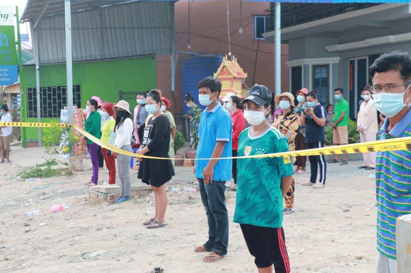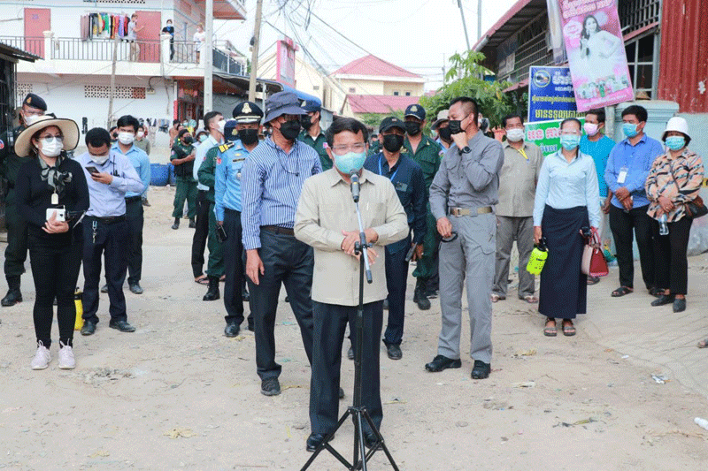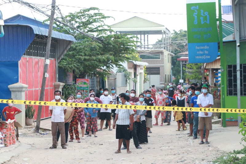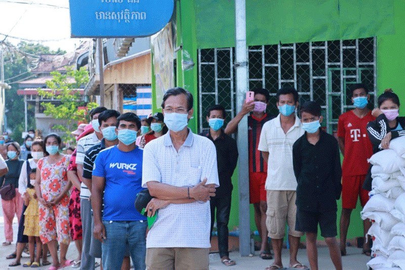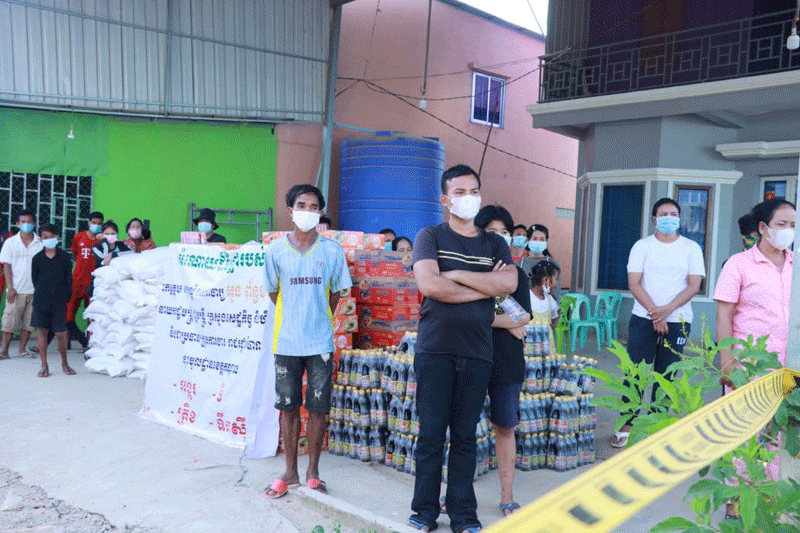 ខេត្តកណ្ដាល៖ រសៀលថ្ងៃទី៤ ខែឧសភា ឆ្នាំ២០២១ ឯកឧត្តម គង់ សោភ័ណ្ឌ អភិបាល នៃគណៈអភិបាលខេត្តកណ្ដាល រួមដំដើរដោយ ឯកឧត្តម អភិបាលរងខេត្ត កងកម្លាំងមានសមត្ថកិច្ច និងអាជ្ញាធរស្រុកអង្គស្នួល បន្តចុះផ្ដល់ស្បៀងអាហាររបស់ឯកឧត្តម អគ្គបណ្ឌិតសភាចារ្យ អូន ព័ន្ធមុនីរ័ត្ន ឧបនាយករដ្ឋមន្ត្រី រដ្ឋមន្ត្រីក្រសួងសេដ្ឋកិច្ច និងហិរញ្ញវត្ថុ និងជាប្រធានក្រុមការងាររាជរដ្ឋាភិបាលចុះជួយមូលដ្ឋានខេត្តកណ្ដាល ដល់ប្រជាពលរដ្ឋដែលកំពុងរស់នៅក្នុងតំបន់ក្រហម ចំនួន ១៥១គ្រួសារ និង៩៩១ បន្ទប់ជួល ក្នុងភូមិពងទឹក ឃុំបែកចាន ស្រុកអង្គស្នួល ខេត្តកណ្ដាល។