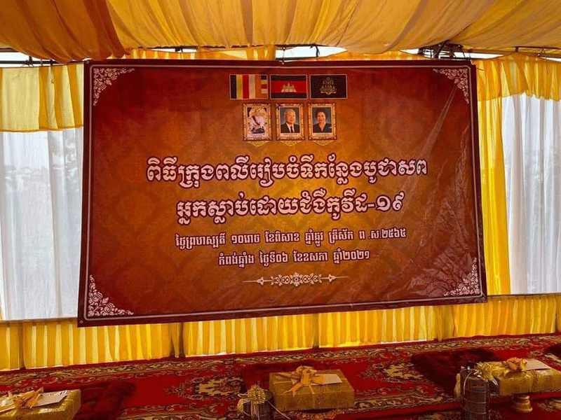 ខេត្តកំពង់ឆ្នាំង:រដ្ឌបាលខេត្តកំពង់ឆ្នាំងជ្រើសរើសយកទីតាំងមួយកន្លែងសម្រាប់សាងសង់ឈាបនដ្ឋានសម្រាប់ទុកបូជាសពអ្នកស្លាប់ដោយជម្ងឺកូវីដ- ១៩ បន្ទាប់ពីសពស្ត្រីម្នាក់ស្លាប់ដោយជំងឺកូវីដ-១៩ ។
