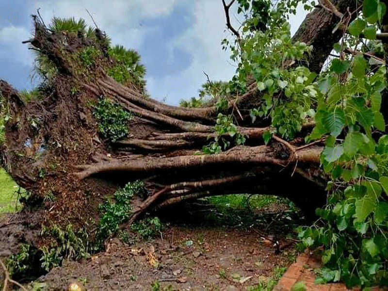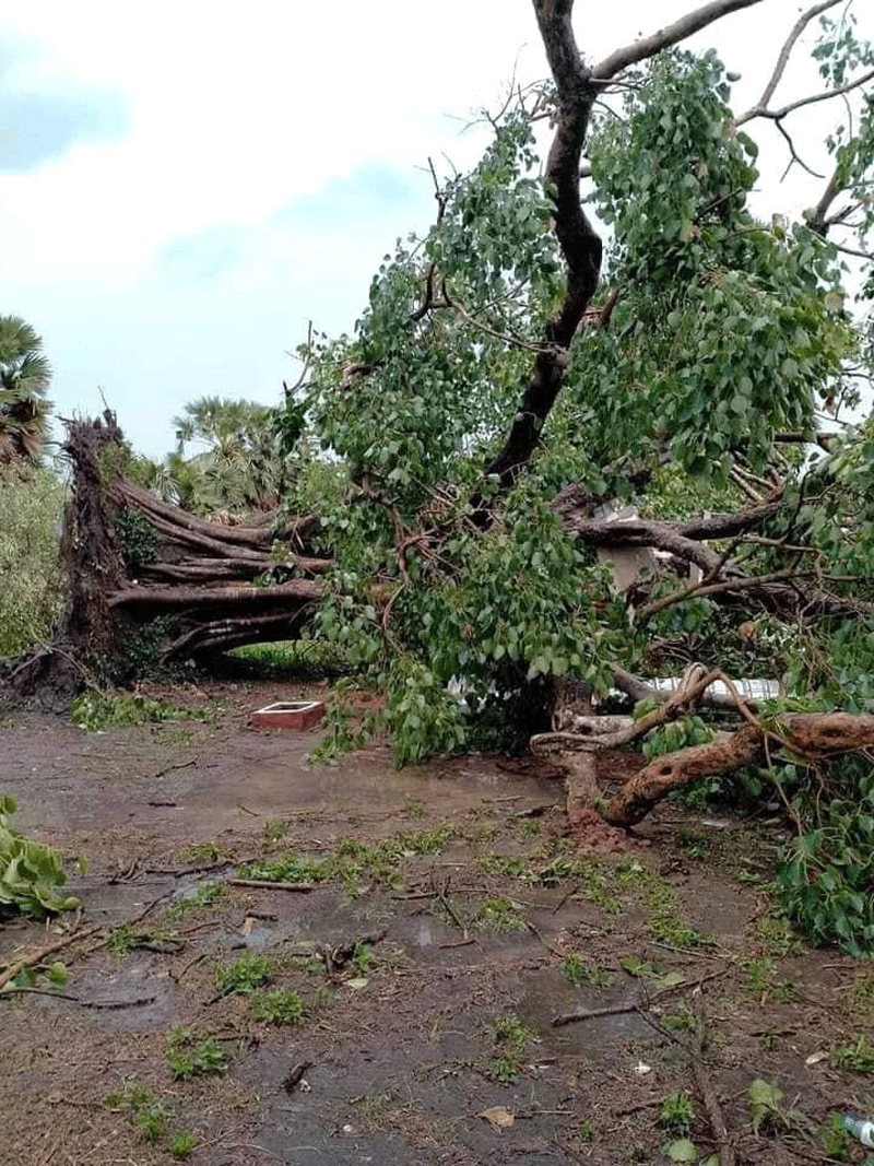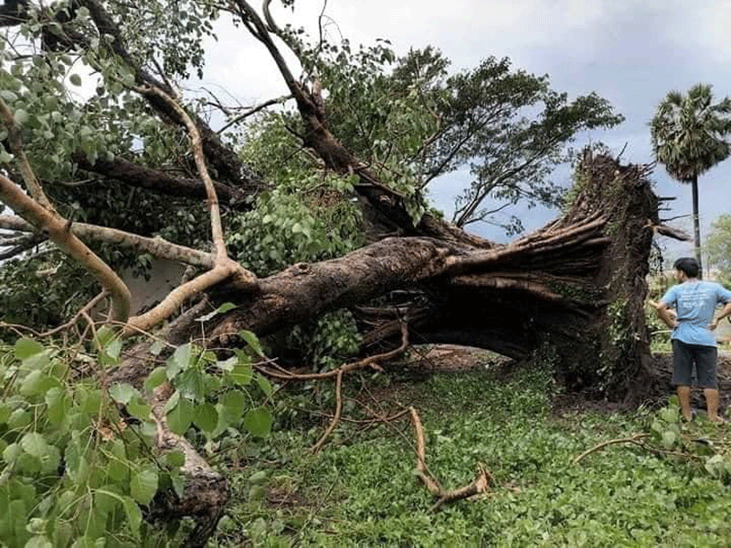 ត្បូងឃ្មុំ: ដើមពោធិ៍ដ៏ធំមួយដេីម ដែលមានអាយុកាលរាប់រយឆ្នាំ គឺ ដើមពោធិ៍លោកតាក្រហម ក ដែលមានចម្ងាយប្រមាណ៧០ម៉ែត្រ ពីដើមពោធិ៍ប្រវត្តិសាស្ត្រ ប្រវត្តិស្នេហារវាង ទុំ និង ទាវ ដែលស្ថិតនៅភូមិជើងខាល ឃុំមង់រៀវ ស្រុកត្បូងឃ្មុំ ខេត្តត្បូងឃ្មុំ ត្រូវបានខ្យល់កន្រ្តាក់ បោកបក់ធ្វើឱ្យដួលរលំនៅល្ងាចថ្ងៃទី៦ ខែឧសភា ឆ្នាំ២០២១។