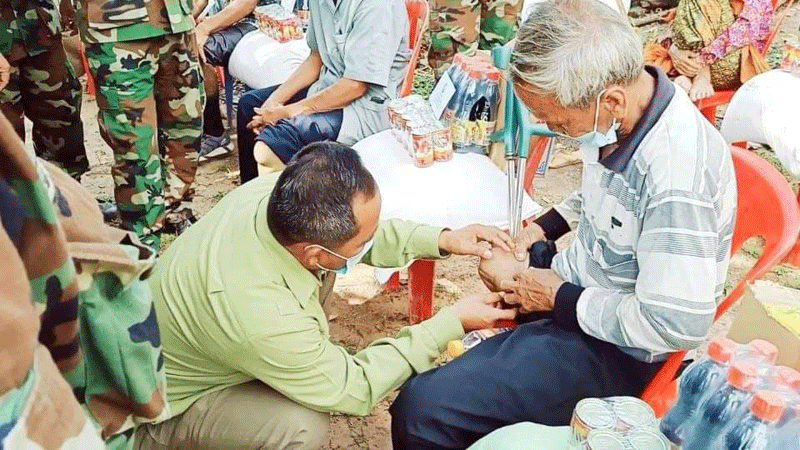 ព្រះវិហារៈ នៅរសៀលថ្ងៃទី០៧ ខែឧសភា ឆ្នាំ២០២១នេះ ឯកឧត្តម ឧត្តមសេនីយ៍ទោ ច័ន្ទ សុភ័ក្ត្រា មេបញ្ជាការតំបន់ប្រតិបត្តិការសឹករងព្រះវិហារ និងជាប្រធាន ស.អ.ក.ខេត្តព្រះវិហារ បានដឹកនាំក្រុមការងារ ស.អ.ក .ខេត្ត ប្រធានកិត្តិយស/ប្រធាន/អនុប្រធាន ស.អ.ក.ស្រុក ប្រធានសាខា និងអាជ្ញាធរមូលដ្ឋាន បាននាំយកថវិកាបេឡាមរណៈសង្រ្គោះចំនួ ន ៤,០០០,០០០៛ ប្រគល់ជូនក្រុមគ្រួសារសពអតីតយុទ្ធជនដែលមានឈ្មោះ ហួន រៀម ភេទប្រុស អាយុ៥៤ឆ្នាំ ជាជនពិការ ជាសមាជិក សមាគមអតីតយុទ្ធជនកម្ពុជាខេត្តព្រះវិហារ ដែលបានទទួលមរណៈភាព នៅថ្ងៃទី០៦ ខែឧសភា ឆ្នាំ២០២១ នៅភូមិត្បែង ឃុំចំរើន ស្រុកសង្គមថ្មី ខេត្តព្រះវិហារដោយរោគាពាធ ។ បន្ទាប់មកនូវ ថ្ងៃ ខែ ឆ្នាំដដែល ឯកឧត្ដម ប្រធានបានបន្តដឹកនាំក្រុមការងារ ស.អ.ក ខេត្ត និងក្រុមការងារ ស្រុក ចុះសួរសុខទុក្ខ អតីតយុទ្ធជន និងគ្រួសារអតីតយុទ្ធជន ដែលមានជីវភាពក្រីក្រ ក្នុងស្រុកសង្គមថ្មី ចំនួន ២០គ្រួសារ ដោយក្នុង ០១គ្រួសារៗ ទទួលបានថវិកាចំនួន ២ម៉ឺនរៀល មី១កេះតូច ទឹកស៉ីអ៉ីវ០១យួរ ត្រីខ១យួរ អង្ករ១បេ ជាអំណោយដ៏ថ្លៃថ្លារបស់រាជរដ្ឋាភិបាល ដែលមានសម្តេចតេជោ ហ៊ុន សែន ជានាយករដ្ឋមន្ត្រី និងជាប្រធានសមាគមអតីតយុទ្ធជនកម្ពុជា ។ក្នុងការចុះប្រគល់ថវិកាបេឡាមរណៈសង្រ្គោះចំនួន១គ្រួសាសពនិងចែកអំណោយដល់គ្រួសារសមាជិកនោះដែរ ឧត្ដមសេនីយ៍ទោ ប្រធានសមាគមអតីតយុទ្ធជនកម្ពុជាខេត្ត បានពាំនាំប្រសាសន៍ផ្ដាំផ្ញើរ សួសុខទុក្ខ និងចូលរួមរំលែកទុក្ខពីសំណាក់ ថ្នាក់ដឹកនាំសមាគម ជាពិសេស សម្ដេច តេជោ ហ៊ុន សែន ប្រធានសមាគមអតីតយុទ្ធជនកម្ពុជា ជូនចំពោះគ្រួសារនៃសព និងបងប្អូនជាគ្រួសារសមាជិក អតីតយុទ្ធជនទាំងអស់ផងដែរ នេះបញ្ជាក់ឲ្យឃើញថា ក្រោមនយោបាយ ឈ្នះឈ្នះរបស់ប្រមុខ រាជរដ្ឋាភិបាលដែលមានសម្ដេច តេជោ នាយករដ្ឋមន្រ្តីនិងជា ថ្នាក់ដឹកនាំប្រមុខរាជរដ្ឋាភិបាល ផងដែរ៕(ដោយ សេង ពិសិដ្ឋ)