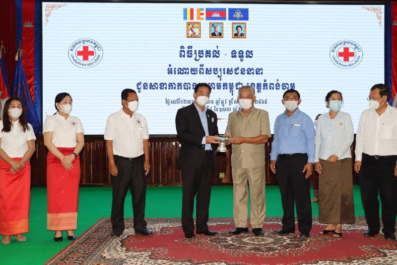 កំពង់ចាម : សាខា កាកបាទក្រហម ខេត្ត កំពង់ចាម នាព្រឹក ថ្ងៃ ទី ៨ ខែឧសភា ឆ្នាំ២០២១នេះ បានប្រារព្ធខូបលេីកទី១៥៨ ទិវាពិភពលោកកាកបាទក្រហមអឌ្ឍចន្ទក្រហម៨ឧសភាឆ្នាំ២០២១ ក្រោមប្រធានបទ «ទាំងអស់គ្នារួមជាមួយកាកបាទក្រហមកម្ពុជា ប្រយុទ្ធនឹងជំងឺកូវីដ-១៩ និងកសាងភាពធន់របស់សង្គមជាតិ »។ ពិធីនេះបានប្រារព្ធឡើងក្រោម វត្តមាន ឯកឧត្ដម ខ្លូត ផន ប្រធាន ក្រុមប្រឹក្សា ខេត្ត និង ឯកឧត្ដម អ៊ុន ចាន់ដា អភិបាលនៃគណៈអភិបាលខេត្តកំពង់ចាម និង ជា ប្រធាន គណៈកម្មាធិការ សាខាកាកបាទក្រហមខេត្ត ដោយមានការចូលរួមពីសមាជិករដ្ឋសភា ព្រឹទ្ធសភាព មន្ទីរអង្គភាពជុំវិញខេត្ត និង សប្បុរសជន ជាច្រើន ផងដែរ ។