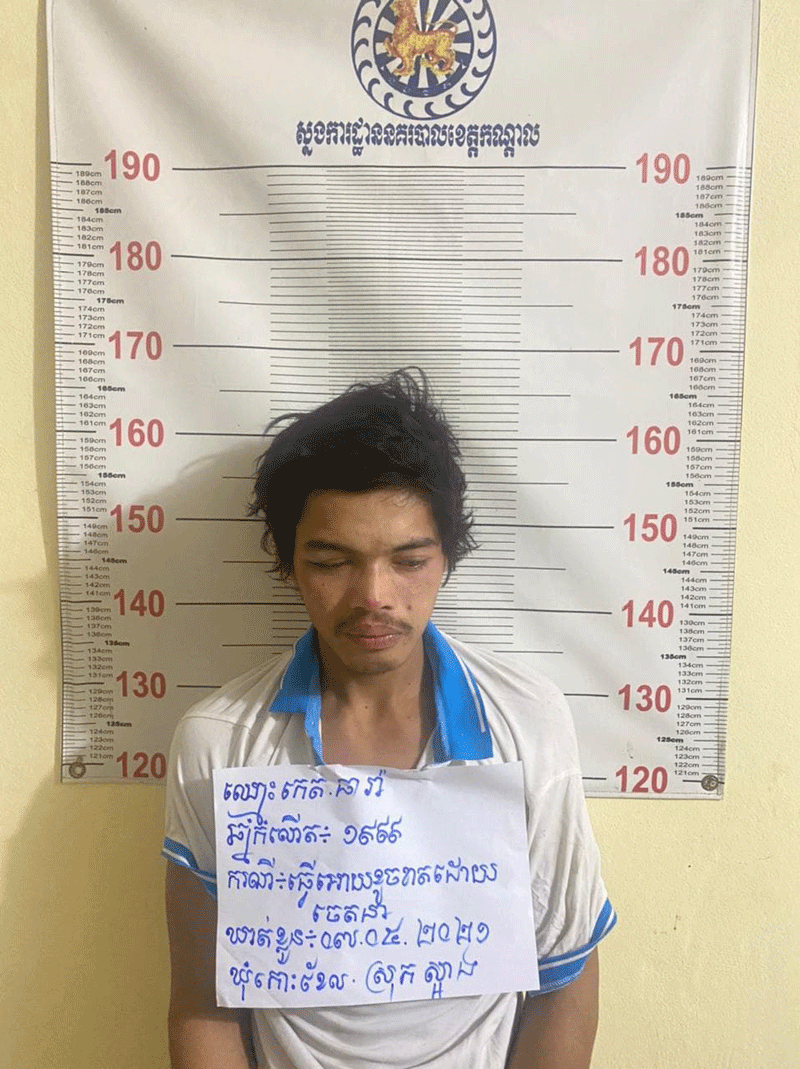 កណ្តាល ៖ យុវជនម្នាក់ត្រូវបានប៉ូលិសស្រុកស្អាងឃាត់ខ្លួន បន្ទាប់ពីវាយបំផ្លិចបំផ្លាញទ្រព្យសម្បត្តិនៅក្នុងផ្ទះដោយចេតនា កាលពីថ្ងៃទី ០៧ខែឧសភាឆ្នាំ២០២១វេលាម៉ោង៥និង ១០នាទីល្ងាច នៅចំណុចផ្ទះជនរងគ្រោះឈ្មោះម៉ែនខុមស្ថិតនៅភូមិព្រែកកែវ ឃុំកោះខែល ស្រុកស្អាងខេត្តកណ្ដាល។