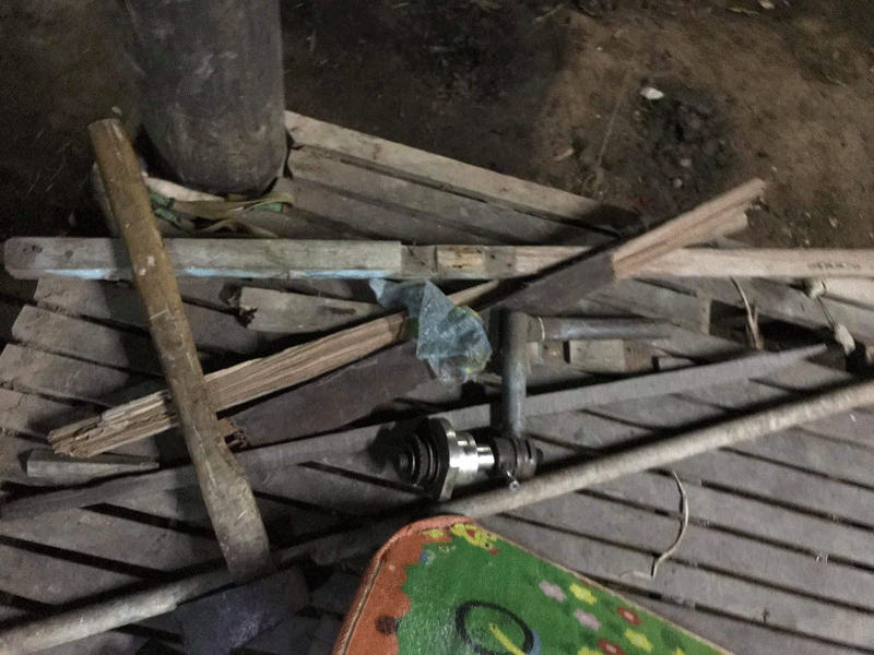 រីឯវត្ថុតាងចាប់យក ពូថៅចំនួន០១មាន ផ្លែដែកដងធ្វើអំពីឈើ។ចំណែកសម្ភារៈខូចខាត ម៉ូតូចំនួន០១គ្រឿងម៉ាកហុងដា សេ១២៥ ពណ៌ខ្មៅឆ្នាំ ២០១១ គ្មានផ្លាកលេខនិង របស់របរមួយចំនួន ។