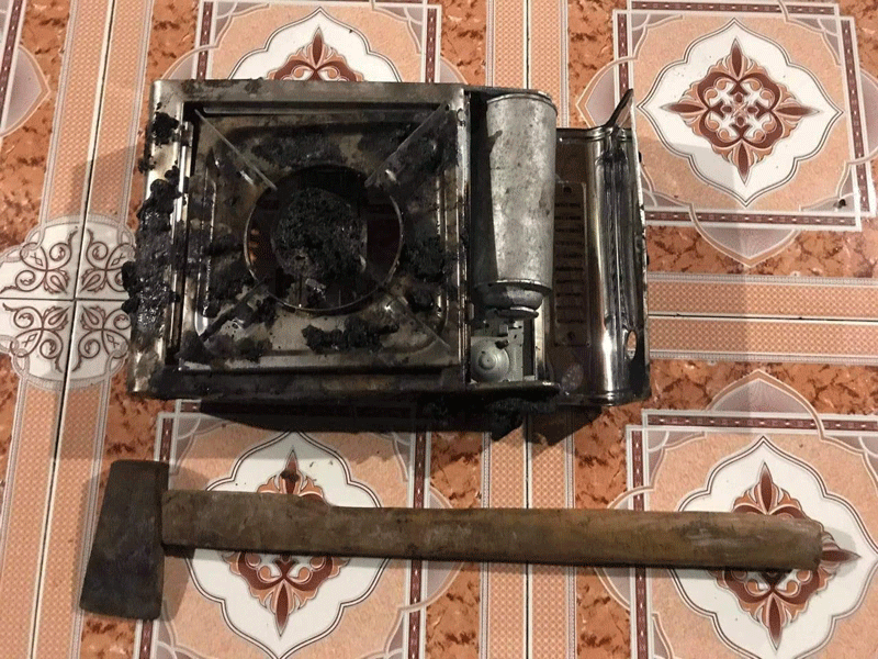 រហូតដល់វេលាម៉ោង៥និង១០នាទីល្ងាច ថ្ងៃខែឆ្នាំដដែល ជនសង្ស័យក៏បានជិះម៉ូតូត្រឡប់មកផ្ទះវិញរួចបានធ្វើសកម្មភាពយកពូថៅកាប់ម៉ូតូនិងវាយបំផ្លិចបំផ្លាញទ្រព្យសម្បត្តិនៅក្នុងផ្ទះបណ្តាលខូចខាតអស់មួយចំនួននិងបានយកចង្ក្រានហ្គាសកាច់ភ្លើងឱ្យឆេះរួចដុតផ្ទះបណ្ដាលឱ្យឆេះហើយត្រូវបានបងប្អូនប្រជាពលរដ្ឋនៅជិតខាងជួយពន្លត់ទាន់។