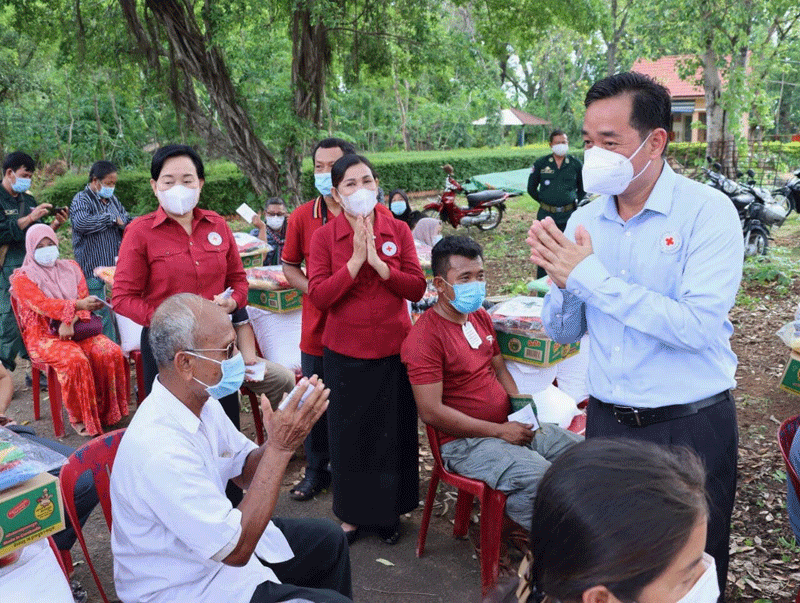 កំពង់ចាម : ឯកឧត្តម អ៊ុន ចាន់ដា អភិបាលខេត្តកំពង់ចាម បានថ្លែងថា តាម រយៈគោលដៅ រួម ក្នុងការ កាត់បន្ថយ ភាព ក្រីក្រ និង ការលើក កម្រិត ជីវភាព របស់ បងប្អូន ប្រជាពលរដ្ឋ អាជ្ញាធរខេត្ត រួមនឹង ក្រុងកំពង់ចាម បាន គិតគូរ ដល់ការលើក កម្ពស់ កម្រិត ជីវភាព ពលរដ្ឋ តាម រយៈ ការ អភិវឌ្ឍន៍ ហេដ្ឋារចនាសម្ពន្ធ័ ដោយ ថ្មីៗ នេះ អាជ្ញាធរ បាន ធ្វើការ ស្ថាបនា ផ្លូវកៅស៊ូ ១ខ្សែ ចេញ ពី វត្ត បឹងស្នាយ រហូត ដល់ ភូមិ តាមាង ស្រុកកំពង់សៀម ឲ្យបាន រួចរាល់ ក្នុង អំឡុង ខែ ១១ ឆ្នាំ ២០២១ខាងមុខ នេះ ដែល អាចធ្វើ ឲ្យ ប្រជាពលរដ្ឋយើង ប្រកប មុខរបរ ផ្សេងៗ ដើម្បី ពង្រឹង ជីវភាពគ្រួសារ ឲ្យកាន់តែ ប្រសើរ ឡើង ។ ការ ថ្លែង យ៉ាង ដូច្នេះ ក្នុង ឱកាស នាំយកអំណោយ សម្តេច កិត្តិព្រឹទ្ធបណ្ឌិត ប៊ុន រ៉ានី ហ៊ុន សែន ប្រធាន កាកបាទក្រហម កម្ពុជា ចែក ជូន ប្រជាពលរដ្ឋ រងគ្រោះ ដោយ ខ្យល់ កន្ត្រាក់ ៧០គ្រួសារ ក្នុង សង្កាត់ សំបួរមាស ក្រុងកំពង់ចាម កាលពី រសៀល ថ្ងៃ ទី ៨ ខែឧសភា ឆ្នាំ ២០២១ ។
