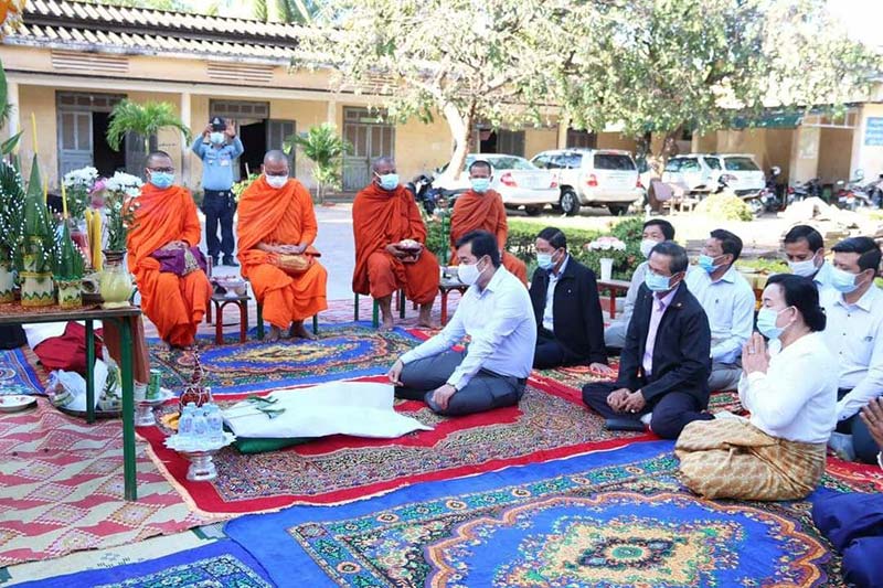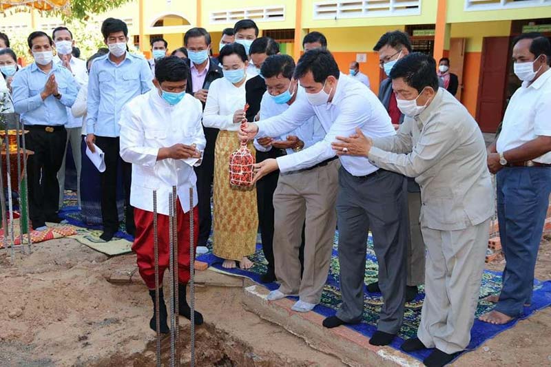 កំពង់ចាមៈ នាព្រឹកថ្ងៃទី០៤ ខែធ្នូ ឆ្នាំ២០២០នេះ ឯកឧត្ដម អ៊ុន ចាន់ដា អភិបាលនៃគណ:អភិបាលខេត្តកំពង់ចាម តំណាងដ៏ខ្ពង់ខ្ពស់ ឯកឧត្តម ឧត្តមសេនីយ៍ឯក ហ៊ុន ម៉ាណែត អគ្គមេបញ្ជាការរង នៃកងយោធពលខេមរភូមិន្ទ និងជាមេបញ្ជាការកងទ័ពជើងគោក បានអញ្ជើញបញ្ចុះបឋមសិលាសាងសង់អគារទីចាត់ការ ១ខ្នង មានទំហំបណ្ដោយ ១១ម៉ែត្រ គុណនឹងទទឹង ៧,៧ម៉ែត្រ និងកម្ពស់ ៥ម៉ែត្រសង់អំពីថ្ម ប្រក់ក្បឿង ស្ថិតនៅសាលាបឋមសិក្សាទក្សិណ ក្រុងកំពង់ចាម ជាអំណោយរបស់ឯកឧត្តម ហ៊ុន ម៉ាណែត និងលោកជំទាវ។ ពិធីនោះ ក៏មានការអញ្ជើញចូលរួម ពីឯកឧត្ដម លោកជំទាវ អភិបាលរងខេត្ត ថ្នាក់ដឹកនាំមន្ទីរ អង្គភាព ក្នុងខេត្ត និងអាជ្ញាធរមូលដ្ឋាន ព្រមទាំងគណៈគ្រប់គ្រងសាលា និងលោកគ្រូ អ្នកគ្រូជាច្រើននាក់ផងដែរ។