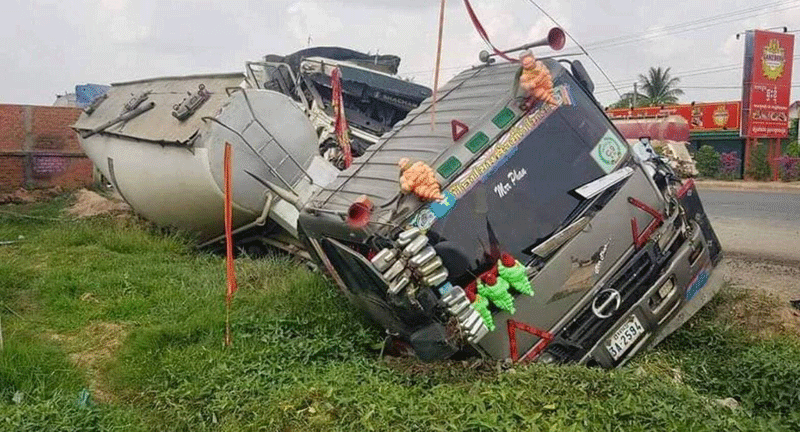 កណ្តាល ៖ មានករណីគ្រោះថ្នាក់ចរាចរណ៍រវាងរថយន្តលាយបេតុងនិងរថយន្តដឹកដី មិនមានរងរបួសដល់មនុស្សនោះទេ គ្រាន់តែខូចរថយន្តទាំងសងខាងតែប៉ុណ្ណោះ ដែលគ្រោះថ្នាក់ខាងលើនេះកើតឡើង នៅតាមណ្ដោយផ្លូវជាតិលេខ៣ ចន្លោះគីឡូម៉ែត្រ ៣០-៣១ ក្នុងភូមិតាឡឹក ឃុំត្រពាំងវែង ស្រុកកណ្ដាលស្ទឹង ខេត្តកណ្ដាល នៅថ្ងៃទី០៨ ខែឧសភា ឆ្នាំ២០២១វេលាម៉ោង១និង៤៥នាទីរសៀល។