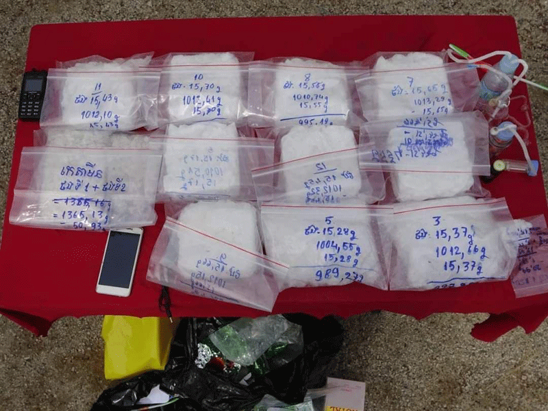 – ថ្នាំញៀនប្រភេទមេតំហ្វេតាមីនចំនួន១០កញ្ចប់ធំ ទម្ងន់៩,៩៥៨.៦២ក្រាម