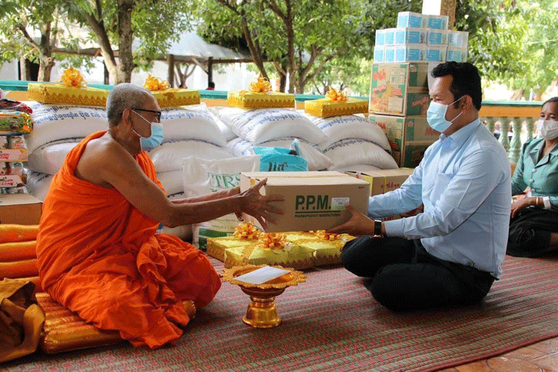 ដោយឡែក ទេយ្យវត្ថុក្នុងវត្តនីមួយៗដែលត្រូវប្រគេនព្រះសង្ឃរួមមាន ១-អង្ករចំនួន០១តោន ២-ត្រីខ១ កេស មាន១០០កំប៉ុង ៣-មីចំនួន ១៨កេសតូច ៤- ទឹកផ្លែឈើគ្រប់ មុខចំនួន ១០កេស ៥-ទឹកដោះ គោខាប់ចំនួន ០២កេសធំ មាន ៩៦កំប៉ុង ៦-កាហ្វេចំនួន ០៥ក ញ្ចប់ធំ មាន ២៥០កញ្ចប់តូច ៧-តែចំនួន ០២គីឡូក្រាម ៨-ស្ករសចំនួន ០១បេ(មាន ២៥ គីឡូក្រាម) ៩-អំបិលចំនួន ០១បេ(មាន ១០ គីឡូក្រាម) ១០-ទឹកត្រីចំនួន ០៥យួរ មាន៣០ដប ១១-ទឹក ស៊ីអ៊ីវចំនួន ០៥យួរ មាន៣០ដប ១២-ប៊ីចេងចំនួន ០១បេ(មាន ២៥គីឡូក្រាម) ១៣-ម៉ាស់ ២០ ប្រអប់ ១៤-សាប៊ូ ៣០ដុំ ១៥-ថ្នាំ ពេទ្យ ១កេស មាន ៨០ប្រអប់និង ថវិកា ២លានរៀល ផងដែរ ៕សានផល្លា