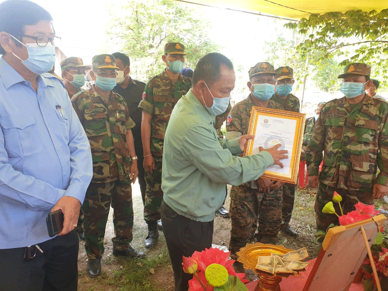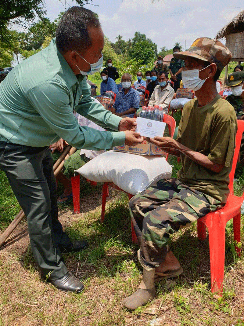 ព្រះវិហារៈ នៅព្រឹកថ្ងៃទី១១ ខែឧសភា ឆ្នាំ២០២១នេះ ឯកឧត្តម ឧត្តមសេនីយ៍ទោ ច័ន្ទ សុភ័ក្ត្រា ប្រធាន សមាគមអតីតយុទ្ធជនកម្ពុជាខេត្តព្រះវិហារ បានដឹកនាំក្រុមការងារ សមាគមខេត្ត ស្រុក សាខា និងអាជ្ញាធរមូលដ្ឋាន បាននាំយកថវិកាបេឡាមរណៈសង្រ្គោះចំនួន ៤,០០០,០០០៛ ប្រគល់ជូនក្រុមគ្រួសារសពអតីតយុទ្ធជនដែលមានឈ្មោះ ជុន ជន់ ភេទប្រុស អាយុ៤៩ឆ្នាំ ជានិវត្តជន ជាសមាជិក សមាគមអតីតយុទ្ធជនកម្ពុជាខេត្តព្រះវិហារ ដែលបានទទួលមរណៈភាពនៅថ្ងៃទី០៩ ខែឧសភា ឆ្នាំ២០២១ នៅភូមិពើក ឃុំពុទ្រា ស្រុកជ័យសែន ខេត្តព្រះវិហារ ដោយមានជម្ងឺប្រចាំកាយ ។ បន្ទាប់មកនៅថ្ងៃ ដដែលនេះដែរ ឯកឧត្ដម ប្រធានបានបន្តដឹកនាំក្រុមការងារ សមាគម ចុះសួរសុខទុក្ខ អតីតយុទ្ធជន និងគ្រួសារអតីតយុទ្ធជន និងនាំយកអំណោយស្បៀងអាហា របស់សម្ដេច តេ ជោ ប្រគល់ជូន បងប្អូនអតីតយុទ្ធជន និងគ្រួសារអតីត ដែលមានជីវភាពខ្វះខាត ក្នុងស្រុកមាន ចំនួន ៣០គ្រួសារ ស្ថិតនៅភូមិទឹកលិច ឃុំស្អាង ស្រុកជ័យសែនខេត្តព្រះវិហារ ដោយក្នុង ០១គ្រួសារៗ ទទួលបាន មី១កេះតូច ទឹកស៉ីអ៉ីវ០១យួរ ត្រីខ១យួរ អង្ករ១បេ និងថវិកាចំនួន ២ម៉ឺនរៀល សូមបញ្ជាក់ថា អំណោយនេះ ជាអំណោយដ៏ថ្លៃថ្លារបស់រាជរដ្ឋាភិបាល ដែលមានសម្តេច តេជោ ហ៊ុន សែន ជានាយករដ្ឋមន្ត្រី និងជាប្រធានសមាគមអតីតយុទ្ធជនកម្ពុជា ផ្ដល់តាមររយៈ មន្ទីសង្គមកិច្ច អតីតយុទ្ធជន និងយុវនីសម្បទាខេត្តព្រះវិហារផ្ដល់ជូនបងប្អូនផងដែរ ។