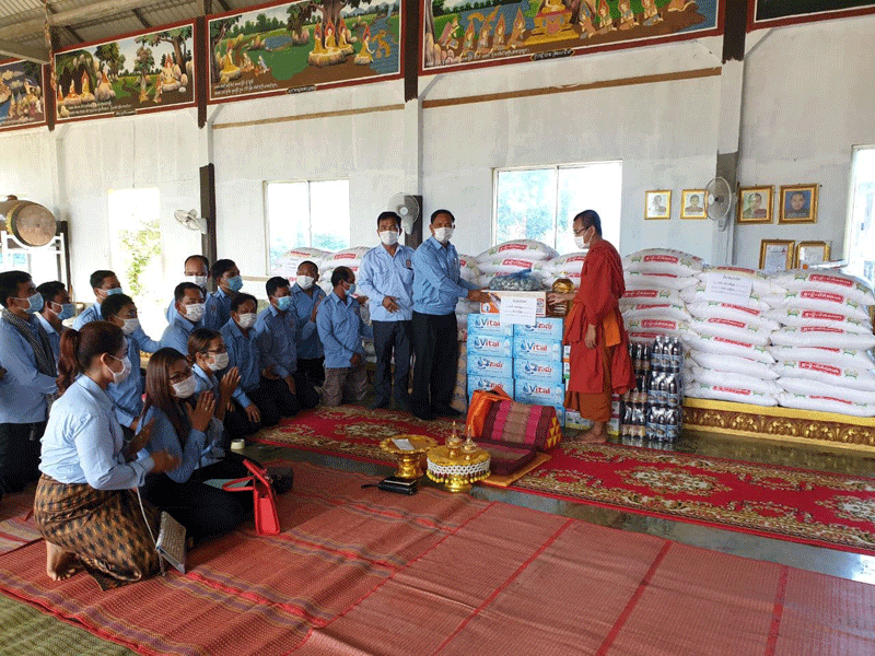 ព្រះវិហារៈ នៅព្រឹកថ្ងៃ ទី១២ ខែឧសភា ឆ្នាំ២០២១នេះក្រុមការងារសាខាសមាគម សិស្សនិស្សិត បញ្ញវន្ត ក្មេងវត្ត ខេត្តព្រះវិហារ ដឹកនាំដោយឯកឧត្តម ឧត្តមសេនីយ៍ទោ ជូ តុងអាន មេបញ្ជាការរងកងពលធំអន្តរាគមន៍ លេខ៣ និងជាទីប្រឹក្សាក្រុមការងារសាខាសមាគម រួមនិងលោកវេជ្ជបណ្ឌិតឯកទេស នុត សុធា ប្រធានក្រុមការងារសាខាសមាគមបានដឹកនាំក្រុមការងារ យកអង្ករ និងគ្រឿងឧបភោគបរិភោគរបស់ ឯកឧត្តម គង់ សោភ័ណ្ឌ អភិបាលខេត្តកណ្តាល និងលោកជំទាវ ថេង ពុទ្ធិតា ព្រមទាំងបុត្រ មកប្រគេន ជូនដល់ព្រះអង្គមង្គល មុនីវង្សាចារ្យ ឡុង សុមុនី ព្រះចៅអធិការវត្ត ទ្រីសទ្ធារាម ហៅវត្តសង្កែពីរ ស្ថិតនៅភូមិសង្កែរពីរ ឃុំសង្កែរពីរ ស្រុកឆែប ខេត្តព្រះវិហារ តាមរយៈក្រុមការងារសាខាសមាគម សិស្សនិស្សិត បញ្ញវន្តក្មេងវត្ត ខេត្តព្រះវិហារ។ សម្ភារៈរួមមាន៖ ១.អង្ករចំនួន០២តោន គ្រឿងទេស ជាច្រើនមុខ រួមនិងថវិការ ចំនួន ៧សែនរៀលផងដែរ៕