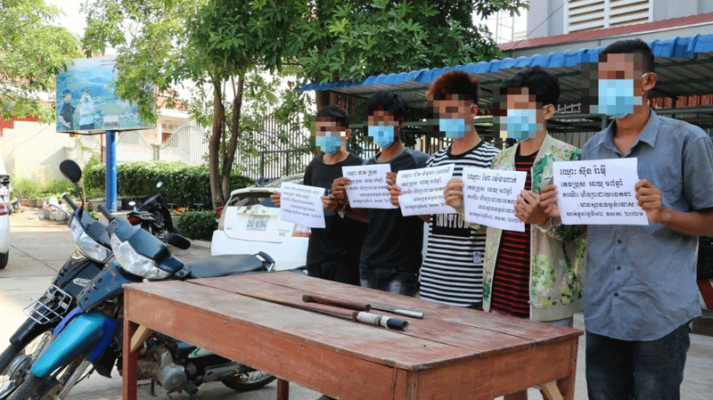 ខេត្តបន្ទាយមានជ័យ៖ ក្រុមក្មេងទំនើង៥នាក់ នៅក្រុងប៉ោយប៉ែត ដែលយកកាំបិត និងពូថៅ កាប់ជនរងគ្រោះបណ្តោយឲ្យដាច់(ក)ដៃ និងរបួសជាច្រើនកន្លែងយ៉ាងធ្ងន់ធ្ងរ ព្រោះសងសឹងគំនុំចាស់ និងខឹងរឿងដណ្តើមសង្សារត្រូវបានកម្លាំងកងរាជអាវុធហត្ថចាប់ឃាត់ខ្លួនកសាងសំណុំបញ្ជូនទៅសាលាដំបូងខេត្តចាត់ការតាមផ្លូវច្បាប់ នៅព្រឹកថ្ងៃទី១៤ ខែឧសភា ឆ្នាំ ២០២១។