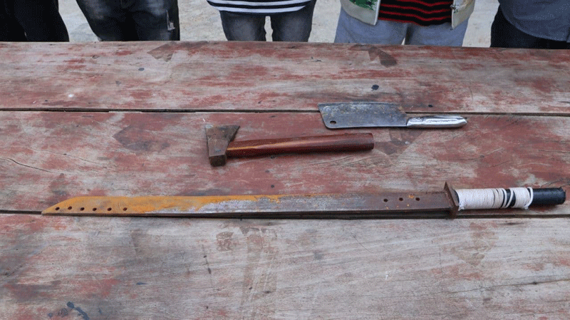 លោក វរសេនីយ៍ត្រី នួន នីណារ៉ូ មេបញ្ជាការមូលដ្ឋានកងរាជអាវុថហត្ថក្រុងប៉ោយប៉ែត បានឲ្យដឹងថា ជនសង្ស័យទាំង៥នាក់ រួមមាន៖ ១.ឈ្មោះ ស៊ុន រ៉ាម៉ី ភេទប្រុស អាយុ១៧ឆ្នាំ ២.ឈ្មោះ ហៃ ម៉េងហាក់ ភេទប្រុស អាយុ១៧ឆ្នាំ ៣.ឈ្មោះផាត ប្រុស ភេទប្រុស អាយុ១៦ឆ្នាំ ៤.ឈ្មោះ ជិន មិថុនា ភេទប្រុស អាយុ១៨ឆ្នាំ, ៥.ឈ្មោះ ថន អារុណប្រាថ្នា (ហៅពេជ្រ) ភេទប្រុស អាយុ១៩ឆ្នាំ ព្រមទាំងដកហូតវត្ថុតាងរួមមាន កាំបិតកែឆ្នៃដងដែកប្រវែង១៨៥សង់ទីម៉ែត្រចំនួន០១ដើម, កាំបិតប៉ាំងតោ ពណ៌ស ដងដែក០១ដើម, ពូថៅ ដងឈើ០១ដើម និងម៉ូតូចំនួន០២គ្រឿង។