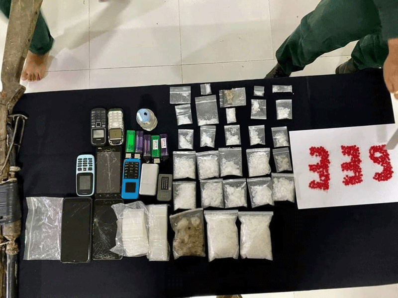 ទី១- ឈ្មោះ វ៉ា សាស៊ី ភេទប្រុស អាយុ៣០ឆ្នាំ មុខរបរមិនពិតប្រាកដ (ប្ដី) (តេស្តវិជ្ជមានសារធាតុ ញៀន) ទី២- ឈ្មោះ យឿត យ៉ារី ភេទស្រី អាយុ៣១ឆ្នាំ មុខរបរមិនពិតប្រាកដ (ប្រពន្ធ) (តេស្តអវិជ្ជមាន សារធាតុញៀន) ។ ទី៣-ឈ្មោះ វ៉ាន់ នាង ភេទស្រី អាយុ៣១ឆ្នាំ មុខរបរមិនពិតប្រាកដ (តេស្តវិជ្ជមានសារធាតុញៀន) ។ ទី៤- ឈ្មោះ ធឿន ធា ភេទប្រុស អាយុ៤០ឆ្នាំ មុខរបរមិនពិតប្រាកដ (តេស្តវិជ្ជមានសារធាតុញៀន) ទាំងអស់គ្នារស់នៅភូមិតាគ្រក់ ឃុំត្រែង ស្រុករតនៈមណ្ឌល ខេត្តបាត់ដំបង ទី៥-ឈ្មោះ លី ស៊ីណូ ភេទប្រុស អាយុ៣៥ឆ្នាំ ជាកម្មករ រស់នៅភូមិដីក្រហម សង្កាត់អូរតាវ៉ៅ ក្រុងប៉ៃលិន ខេត្តប៉ៃលិន (តេស្តវិជ្ជមានសារធាតុ ញៀន) និងទី៦- ឈ្មោះ ធឿន ចន្ទ្រា ភេទស្រី អាយុ២២ឆ្នាំ មុខរបរមិនពិតប្រាកដ រស់នៅភូមិអង្គ ឃុំទំពូង ស្រុកថ្មគោល ខេត្តបាត់ដំបង (តេស្តវិជ្ជមានសារធាតុញៀន) ។ វត្ថុតាងដែលសមត្ថកិច្ចនគរបាល ដកហូតបានសរុបមាន ៖ ម្សៅក្រាមព៌ណសថ្លា (សង្ស័យម៉ាទឹកកក) ចំនួន២៧កញ្ចប់ (ក្នុងនោះធំ១៣កញ្ចប់) ថ្នាំញៀនប្រភេទWYពណ៌ក្រហមចំនួន៣៣៩គ្រាប់ ជញ្ជីងថ្លឹងថ្នាំញៀនចំនួន០២គ្រឿង ទូរស័ព្ទដៃចំនួន០៧គ្រឿង ថង់ប្លាស្ទិចចំនួន០២ដុំ ដែកកេះចំនួន០៥ដើម ដបសម្រាប់ជក់គ្រឿងញៀនចំនួន០១ កាំភ្លើងច្នៃចំនួន០២ដើម ។ បច្ចុប្បន្ន ជនសង្ស័យ ត្រូវនគរបាលក្រុងប៉ៃលិន កសាងសំណុំរឿង បញ្ជូនទៅតុលាការចាត់ការតាមនិតិវិធី ៕ ដោយ ៖ នីយ៉ា
