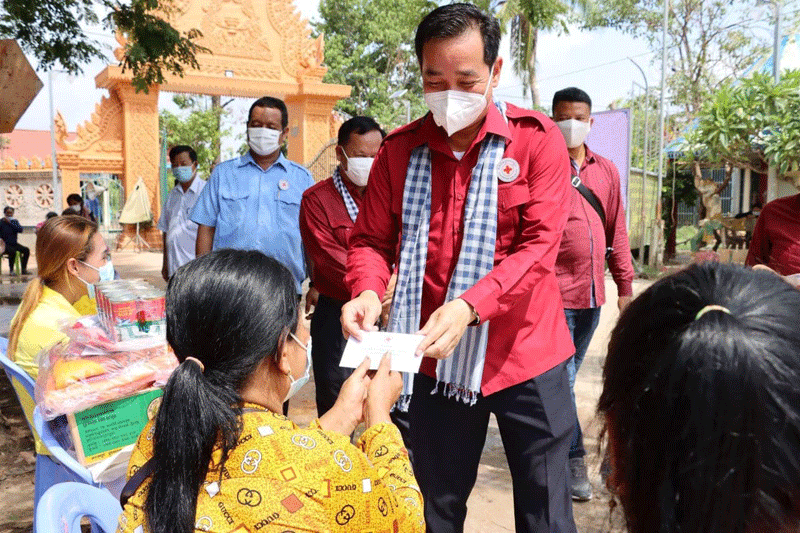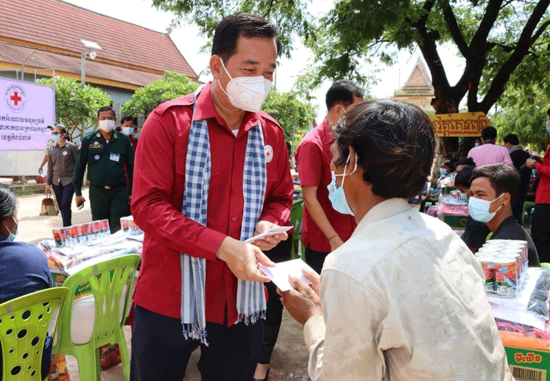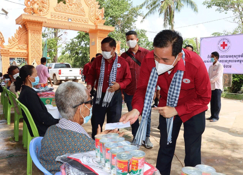 កំពង់ចាម : ឯកឧត្តម អ៊ុន ចាន់ដា អភិបាលខេត្តកំពង់ចាម អមដំណើរដោយ មន្ត្រី ពាក់ព័ន្ធ នាព្រឹក ថ្ងៃ ទី ១៨ ខែឧសភា ឆ្នាំ ២០២១ នេះ បាននាំយកអំណោយសម្តេចកិត្តិព្រឹទ្ធបណ្ឌិត ប៊ុន រ៉ានី ហ៊ុន សែន ប្រធាន កាកបាទក្រហម កម្ពុជា ចែក ជូនប្រជាពលរដ្ឋរងគ្រោះដោយខ្យល់កន្ត្រាក់ ចំនួន ៧០គ្រួសារ មកពីឃុំព្រែកកុយ ឃុំរាយប៉ាយ និងឃុំព្រែកក្របៅ ស្រុកកងមាស ខេត្តកំពង់ចាម ។
