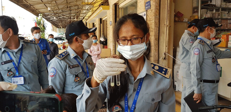 បើតាមលោក ផឹង និល ប្រធានសាខាការពារអ្នកប្រើប្រាស់ កិច្ចការប្រកួតប្រជែង និង បង្ក្រាបការក្លែងបន្លំសាខាខេត្តស្វាយរៀងបាឲ្យដឹងថា៖រាជរដ្ឋាភិបាលកម្ពុជាកំពុងយកចិត្តទុកដាក់ពង្រឹងការប្រយុទ្ធប្រឆាំងនិងជំងឺកូវីដ-១៩នោះមន្ត្រីសាខា ក ប ប ខេត្តស្វាយរៀងនៅតែបន្តចុះត្រួតពិនិត្យរាល់មុខទំនិញគ្រប់ប្រភេទដែលដាក់តាំំងលក់នៅតាមទីផ្សារជាក់ស្តែងមន្ត្រីជំនាញយើងបានពិនិត្យទៅលើ អាកុល ជែលលាងដៃនៅតាម ឪសថស្ថាននិងផ្ទះលក់ដូរជុំវិញផ្សារវាលយន្តក្រុងស្វាយរៀងចំនួន ៦ ទីតាំងនិងបានប្រើប្រាស់ឧបករណធ្វើ Test Kits បឋមទៅលើអាកុល និង ជែលលាងដៃទាំង ៦ ទីតាំងដើម្បីស្វែងរកអាកុលក្លែងក្លាយ ។