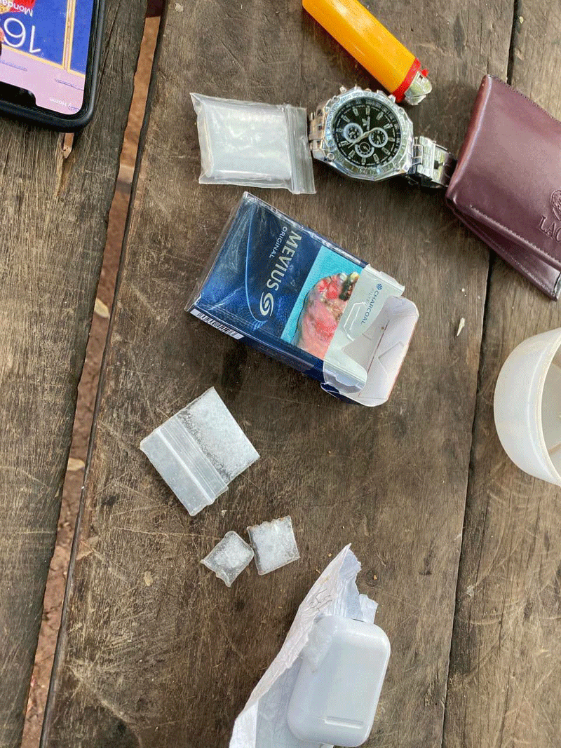 ជនសង្ស័យទាំង ៣នាក់ ខាងលើស្នាក់នៅក្នុងភូមិឃុំកើតហេតុ ដែលបានប្រើប្រាស់ និង ជួញដូរនូវសាធាតុញៀនខុសច្បាប់ ស្ថិតនៅភូមិស្រះឈូក សង្កាត់កំពង់ប្រណាក ក្រុងព្រះវិហារ ខេត្តព្រះវិហារ ដកហូតបានវត្ថុថ្នាំញៀន ម្សៅក្រាមសថ្លា ” ម៉ាទឹកកក ” ចំនួន ១កញ្ចប់ធំ និង ៣កញ្ចប់តូច រួមទាំងវត្ថុតាងមួយចំនួនថែមទៀត ។