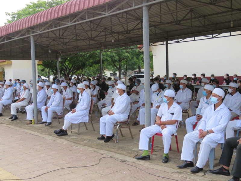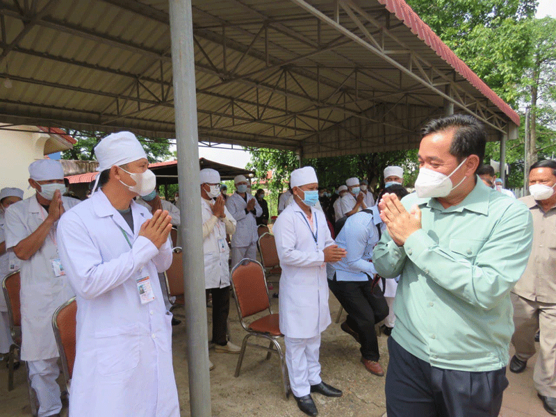 កំពង់ចាម : ក្នុង ឱកាស ជួប សំណេះសំណាល សាកសួរសុខទុក ក្រុម គ្រូពេទ្យ កងយោធពលខេមរភូមិន្ទ ចាក់ វ៉ាក់សាំង បង្ការ ជំងឺ កូវីដ -១៩ នៅ មន្ទីរពេទ្យ យោធា ភូមិភាគ ២ ( 7D ) នាព្រឹក ថ្ងៃទី ២០ ខែឧសភា ឆ្នាំ ២០២១ នេះ ឯកឧត្តម អ៊ុន ចាន់ដា អភិបាលខេត្តកំពង់ចាម បាន ថ្លែង ថា ដោយសារ ការ ធ្វេសប្រហែស របស់ មនុស្ស តែ ម្នាក់ ជំងឺ កូវីដ -១៩ បាន ឆ្លង រីករាលដាល ដល់ កម្មករ កម្មការិនី ជា បន្តបន្ទាប់ ហើយ រោងចក្រ ចំនួន៤ ត្រូវ បាន ផ្អាក សកម្មភាព ការងារ ផងដែរ ជាក់ស្ដែងនៅថ្ងៃទី១៩ ខែឧសភា ឆ្នាំ២០២១ នេះ ក្រុម ការងារ មន្ត្រី សុខាភិបាល បានយកសំណាកកម្មករកម្មការិនី និងអ្នកសង្ស័យចំនួន ៦១២នាក់ លទ្ធផលតេស្ដរហ័សបាន រកឃើញវិជ្ជមានកូវីដ-១៩ ចំនួន៥២នាក់ ហើយ បាន បញ្ជូន ទៅ ព្យាបាលនៅមន្ទីរពេទ្យមេគង្គកំពង់ចាម និងបន្តស្រាវជ្រាវរកអ្នកដែល ប៉ះពាល់ ផងដែរ ។