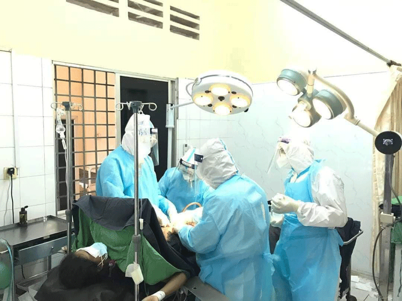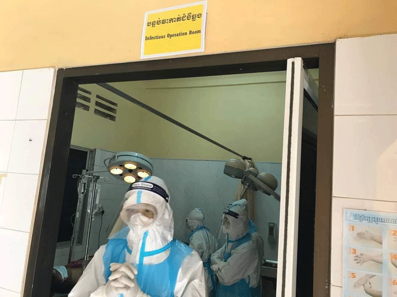 ខេត្តកំពង់ឆ្នាំង៖ក្រុមគ្រូពេទ្យវះកាត់នៃមន្ទីរពេទ្យបង្អែកខេត្តកំពង់ឆ្នាំង កាលពីរសៀលថ្ងៃទី ២៥ខែឧសភា ឆ្នាំ២០២១ នេះថាបានធ្វើការវះកាត់អ្នកជំងឺរលាកស្រោមពោះដោយសារធ្លា យខ្នែងពោះវៀន និងមានវិជ្ជមានកូវីដ-១៩ បានដោយជោគជ័យផងដែ ។