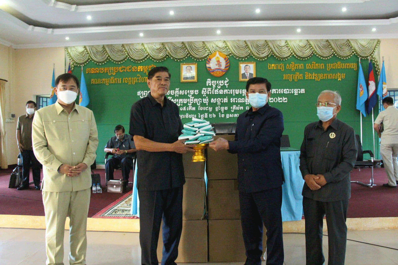 ព្រះវិហារៈ ថ្ងៃទី២៦ ខែឧសភា ឆ្នាំ២០២១ នៅទីស្នាក់ការគណបក្សប្រជាជនកម្ពុជាខេត្តព្រះវិហារ ឯកឧត្តម មាស សុភា សមាជិកគណៈអចិន្ត្រៃយ៍ គណៈកម្មាធិការកណ្ដាល និងជាប្រធានក្រុមការងារចុះមូលដ្ឋានខេត្ត បានអញ្ជើញជាអធិតីក្នុងកិច្ចប្រជុំផ្សព្វផ្សាយសេចក្ដីសម្រេច ស្ដីពីផែនការរួមឆ្ពោះទៅកាន់ការបោះឆ្នោត ជ្រើសរើសក្រុមប្រឹក្សា ឃុំ/សង្កាត់អាណត្តិទី៥ ឆ្នាំ២០២២។ កិច្ចប្រជុំនេះមានការអញ្ជើញចូលរួមពីសំណាក់ថ្នាក់ដឹកនាំគណបក្សថ្នាក់កណ្ដាល និងថ្នាក់ដឹកនាំគណ បក្សថ្នាក់ខេត្ត/ស្រុក ឃុំ/សង្កាត់ និងបណ្ដាថ្នាក់ដឹកនាំពីគ្រប់សាខាទាំងអស់ក្នុងខេត្ត។ បន្ទាប់ពីមតិបើកអង្គប្រជុំ និងការអាននូវសេចក្ដីសម្រេចស្ដីពីផែនការរួមឆ្ពោះទៅកាន់ ការបោះឆ្នោត ជ្រើសរើសក្រុមប្រឹក្សាឃុំ/សង្កាត់ ឯកឧត្តម សួស យ៉ារ៉ា សមាជិកគណៈកម្មាធិការកណ្ដាល និងជាអនុប្រធានក្រុមការងារគណបក្សចុះមូលដ្ឋានខេត្តព្រះវិហារ បានជំរុញដល់សមាជិក សមាជិការនៃកិច្ចប្រជុំទាំងអស់បង្កើនការយកចិត្តទុកដាក់ បន្តថែរក្សាការពារ និងបន្តការទប់ស្កាត់ការ រីរាលដាលនៃជម្ងឺកូវីដ១៩ ដោយអនុវត្តឲ្យបាននូវ៣កុំ និង៣ការពារ និងបន្តពង្រឹងដល់គ្រប់បណ្ដា បក្សប្រជាជនទាំងអស់ក្នុងមូលដ្ឋានដើម្បីចូលរួមយកភាពឈ្នះក្នុងឱកាសនៃការបោះឆ្នោតជ្រើសរើសក្រុមប្រឹក្សា ឃុំ/សង្កាត់អាណត្តិទី៥ ឆ្នាំ២០២២ខាងមុខ។ ឯកឧត្តមសង្កត់ធ្ងន់ទៅលើការពង្រឹងសេវាសាធារណៈ និងសុខភាពសាធារណៈ ថ្នាក់ស្រុកត្រូវជម្រុញ និងក្ដាប់ឲ្យបានពីស្ថិតិក៏ដូចជាសន្ទស្សន៍ឲ្យបានជាក់លាក់ដោយមានក្រុមយុវជនចូលរួមសហការអនុវត្តន៍។ ឯកឧត្តមបានបន្ថែមទៀតថា នៅសប្ដាហ៍ទី១ ខែមិថុនា ឆ្នាំ២០២១ ខាងមុខនេះ និងរៀបចំពិធីបញ្ចុះបឋមសិលាសាសងអាគាមន្ទីរពិសោធន៍នៅក្នុងបរិវេណមន្ទីរពេទ្យបង្អែក១៦មករាខេត្តព្រះវិហារ និងសម្ពោធដាក់ឲ្យប្រើប្រាស់នៅមុនពេលបោះឆ្នោត។ នេះគឺគោលបំណងទ្រ ទ្រង់វិស័យសុភាពសាធារណៈជូនប្រជាពលរដ្ឋ។មានប្រសាន៍ក្នុងកិច្ចប្រជុំ ឯកឧត្តម មាស សុភា សមាជិកគណៈអចិន្ត្រៃយ៍ គណៈកម្មាធិការកណ្ដាល និងជាប្រធានក្រុមការងារចុះមូល ដ្ឋានខេត្ត ព្រះវិហារ បានពាំនាំនូវការផ្ដាំផ្ញើ និងសួសុខទុក្ខពីសំណាក់សម្ដេចតេជោប្រធានគណបក្ស និងសម្ដេចកិត្តិព្រឹទ្ធបណ្ឌិត ។ ឯកឧត្តមបានជម្រុញឲ្យមានការបន្តថែរក្សាឲ្យបាននូវ៣កុំនិង៣ការពារដើម្បីទប់ស្កាត់ឲ្យបាននូវការឆ្លងរីករាលដាលនៃជម្ងឺកូវីដ១៩ និងបង្កើនការអនុវត្តន៍ឲ្យសកម្មក្នុងការសហការ គ្រប់បណ្ដាញពាក់ពន្ធ័ ទាំងអស់របស់គណបក្សក្នុងចរន្តនៃចលនាសកម្មក្នុងមូលដ្ឋាន ដោយត្រូវមានផែនការ និងកម្មវិធី ច្បាស់លាស់ក្នុងការចុះជួបស៊ីជម្រៅជាមួយសមាជិកបក្ស និងប្រជាពលរដ្ឋ ន