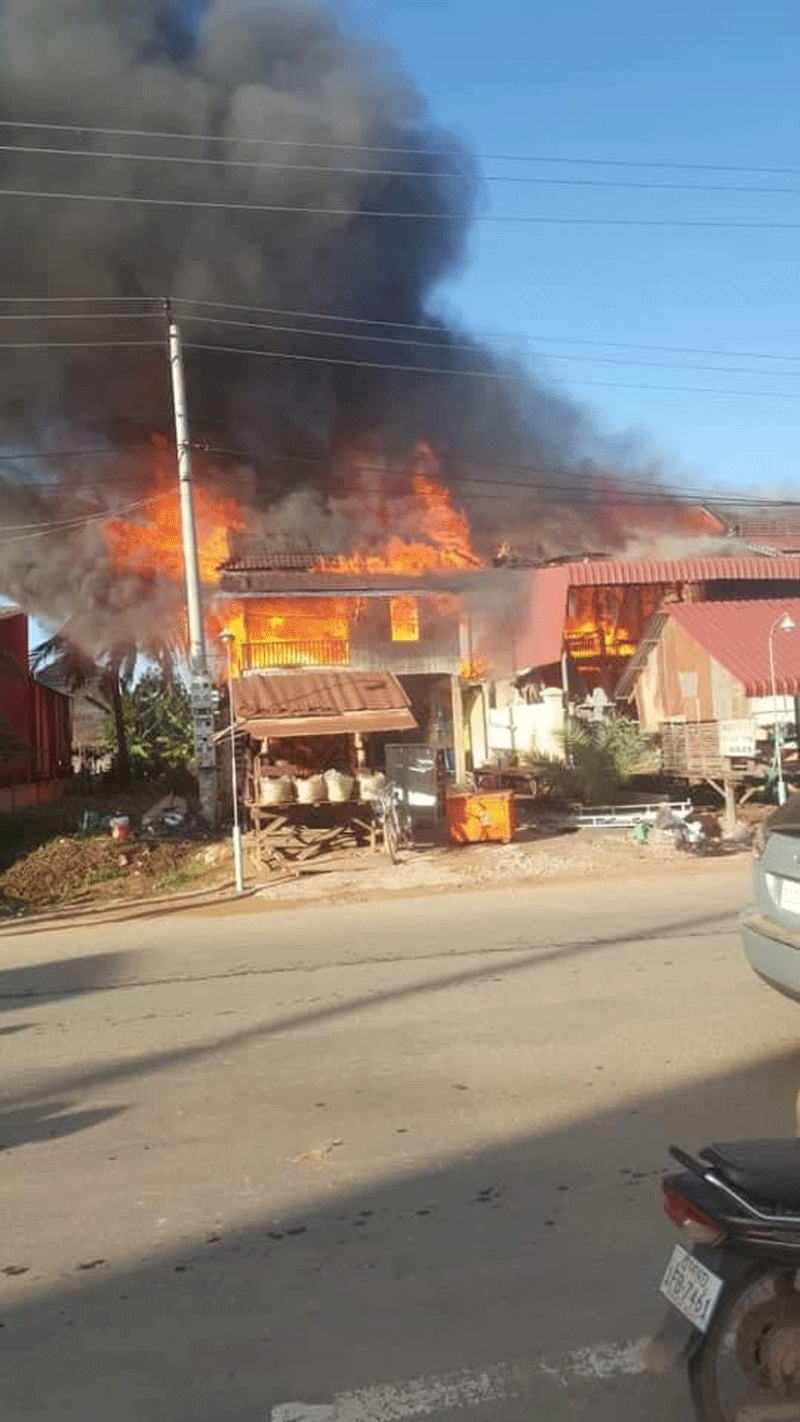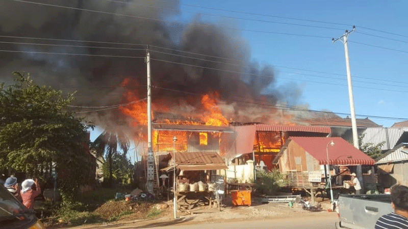 កណ្តាល ៖ ផ្ទះសង់អំពីឈើលើថ្មក្រោមចំនួន៣ខ្នងត្រូវបានភ្លើងឆាបឆេះអស់ទាំងស្រុង ខណៈផ្ទះ១ខ្នងទៀតឆេះអស់មួយចំហៀងត្រូវរថយន្តពន្លត់អគ្គីភ័យបាញ់ទឹកអន្តរាគមន៍ភ្លាមៗ បានកើតឡើងកាលពីវេលាម៉ោង៤និង៣០នាទីល្ងាច ថ្ងៃទី២៨ ឧសភា ២០២១ នៅក្នុងភូមិព្រែកស្នាយ ម្តុំផ្ទះលក់ឆៃប៉ូវឆ្ងាញ់ ឃុំព្រែកគយ ស្រុកស្អាង ខេត្តកណ្តាល បណ្តាលមកពីទុស្សេចរន្តអគ្គិសនី។