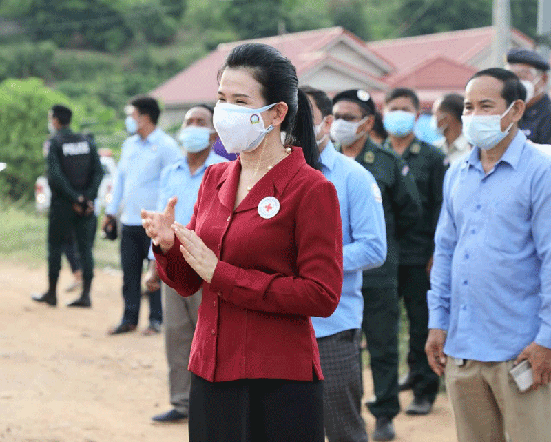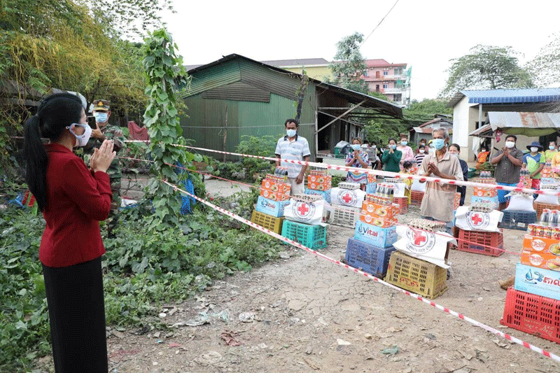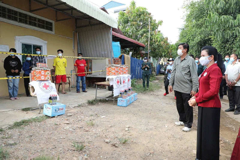 នៅក្នុងឱកាសនោះ លោកជំទាវ ក៍បាននាំនូវប្រសាសន៍ផ្តាំផ្ញើការសួរសុខទុក្ខ របស់សម្តេចតេជោ ហ៊ុន សែន នាយករដ្ឋមន្រ្តីនៃព្រះរាជាណាចក្រកម្ពុជា និងសម្តេចកិត្តិព្រឹទ្ធបណ្ឌិត ប៊ុន រ៉ានី ហ៊ុនសែន ប្រធានកាកបាទក្រហមកម្ពុជា ជូនដល់បងប្អូនប្រជាពលរដ្ឋ ដែលកំពុងស្នាក់នៅតំបន់បិទខ្ទប់នេះ ដែលជានិច្ចកាលសម្តេច តែងតែនៅរួមសុខរួមទុក្ខជាមួយប្រជាពលរដ្ឋគ្រប់គ្រាលំបាក និងមិនទុកអោយប្រជាពលរដ្ឋណាម្នាក់ដាច់ស្បៀងស្លាប់ដោយមិនបានដឹង និងមិនបានដោះស្រាយជូនឡើយ ។