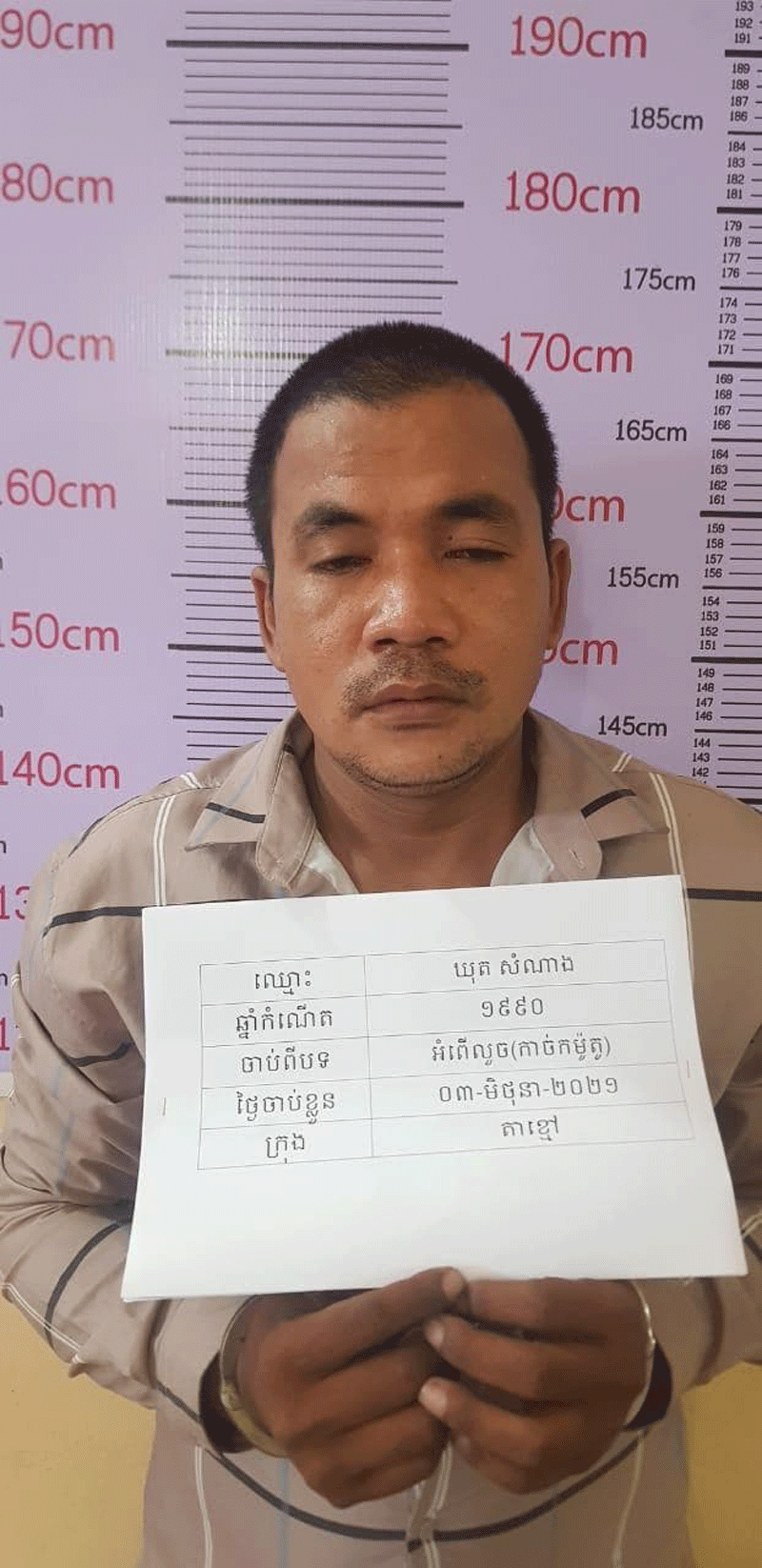 ប៉ូលិសបន្តថា កាលពីវេលាកើតហេតុខាងលើ ជនរងគ្រោះបានចាក់សោកម៉ូតូរបស់ខ្លួនចតទុកមុខផ្ទះ ហើយចូលក្នុងផ្ទះបាត់ទៅ ។នៅពេលនោះក៏ស្រាប់តែឮសំឡេងដេរម៉ូតូមិនឆេះ ក៏ចេញមកមើលឃើញ ជនសង្ស័យម្នាក់ឈ្មោះឃុត សំណាង បានបណ្តើរម៉ូតូរបស់ជនរងគ្រោះចេញពីផ្ទះ បានប្រហែល១០ម៉ែត្រ ក៏ស្រែកថា«ចោរៗ»ផ្អើលអស់ប្រជាពលរដ្ឋចេញមក ដេញចាប់និងព្រួតវាយឡើងទ្រោមខ្លួន ចំណែកបក្ខពួកម្នាក់ទៀតបានជិះម៉ូតូរត់គេចខ្លួនបាត់ទៅ។