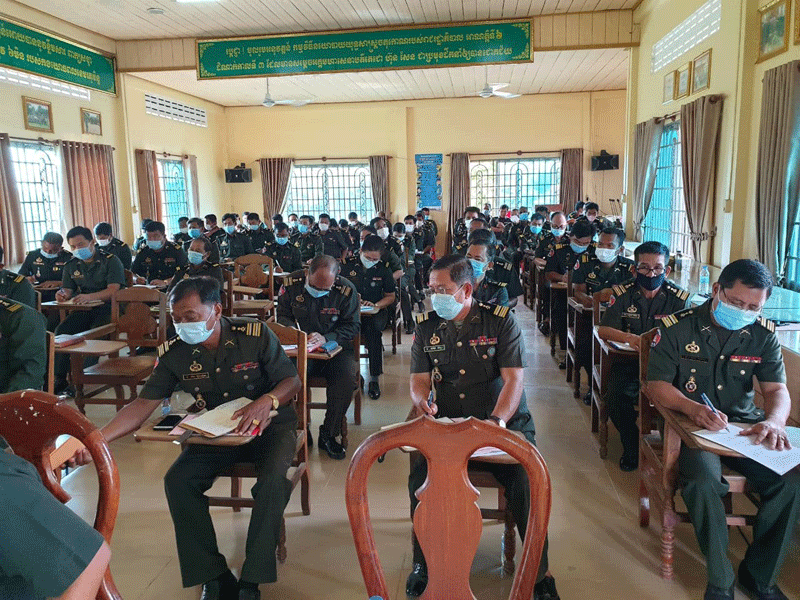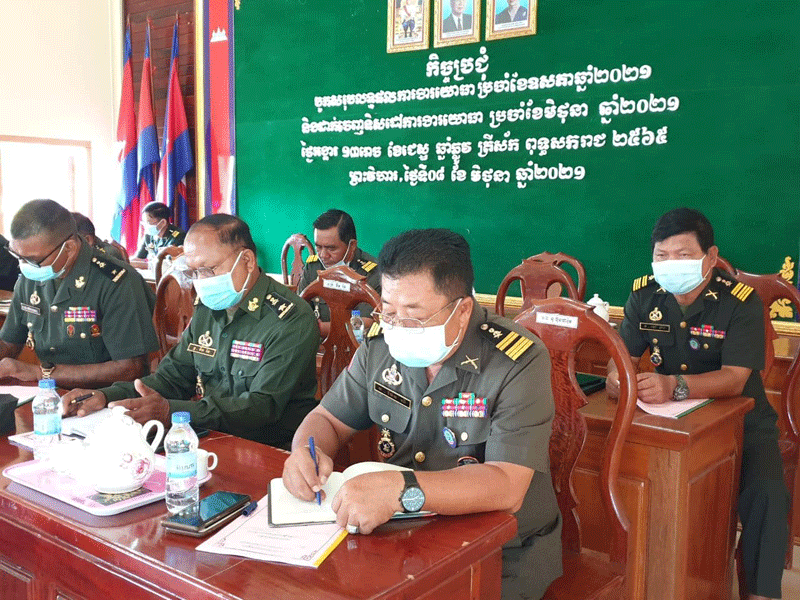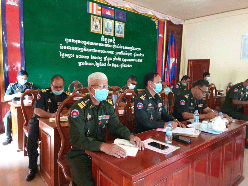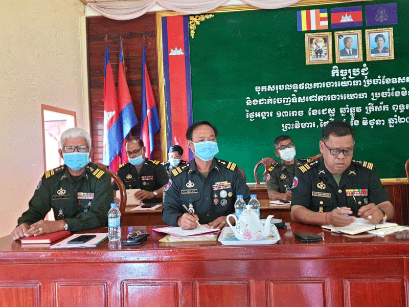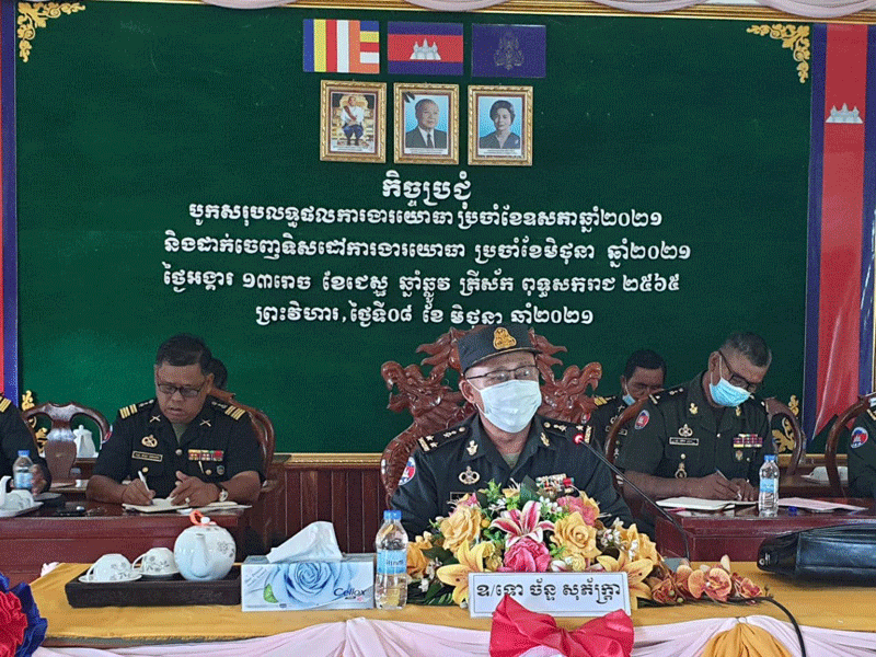 ព្រះវិហារ៖នៅព្រឹកថ្ងៃ ទី០៨ ខែមិថុនា ឆ្នាំ ២០២១នេះ ឯកឧត្ដម ឧត្ដមសេនីយ៍ ទោ ច័ន្ទ សុភ័ក្ដ្រា មេបញ្ជាការតំបន់ប្រតិបត្ដិការសឹករងព្រះវិហារ បានអញ្ជើញដឹកនាំ នាយទាហាន នាយទាហានរង លោកមេបញ្ជាការផ្នែកសឹករង មេបញ្ជាការប្រចាំទិស នាយការិយាល័យចំណុះតំបន់ប្រតិបត្តការ សឹករងព្រះវិហារ បើកកិច្ចប្រជុំ បូកសរុបលទ្ធផលការងារយោធា ប្រចាំខែឧសភា ឆ្នាំ២០២១ នឹងដាក់ចេញទិសដៅការងារយោធា ប្រចាំខែមិថុនា ឆ្នាំ២០២១ នៅទីបញ្ជាការតំបន់ប្រតិបត្តិការ សឹករងព្រះវិហារ។