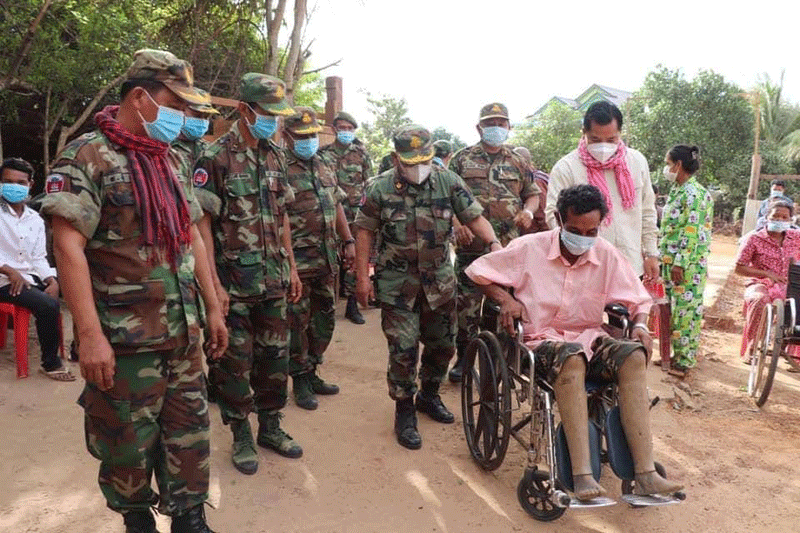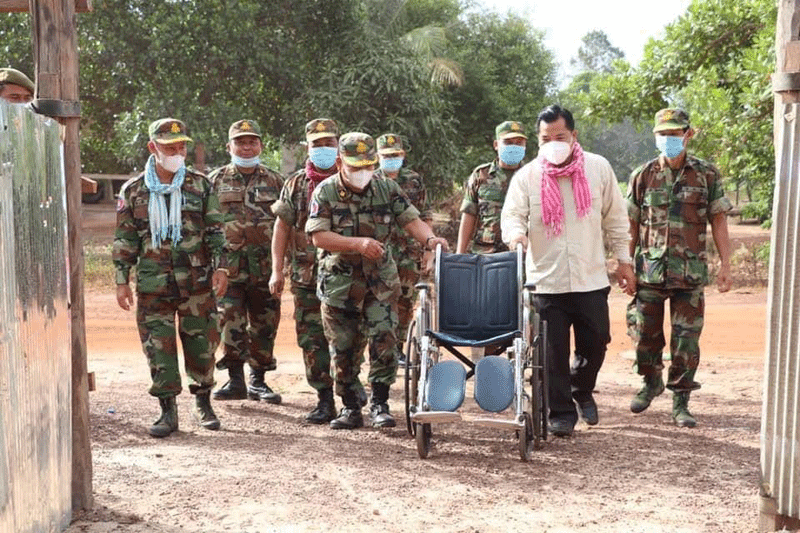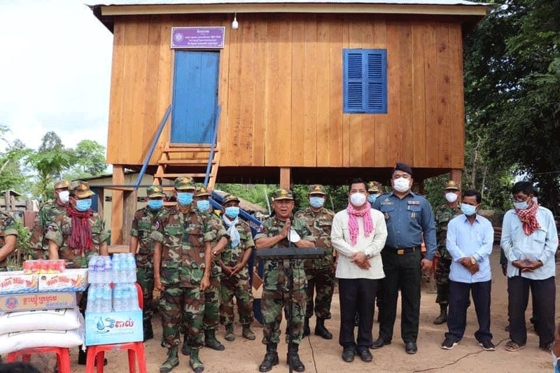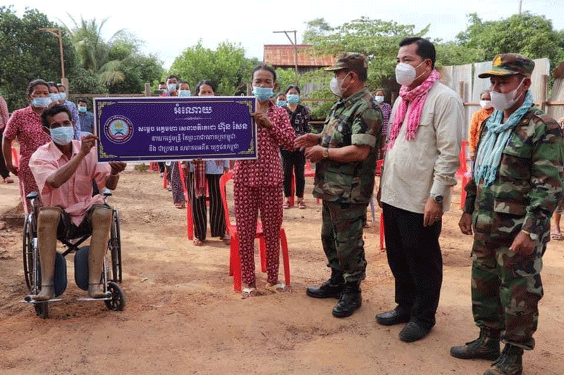 ខេត្តកំពង់ធំ៖ ឧត្តមសេនីយ៍ទោ សោម ស៊ុន ប្រធានសមាគមអតីតយុទ្ធជនកម្ពុជា ខេត្តកំពង់ធំ អមដំណើរដោយលោក ឡង គីស៊ិង អភិបាលស្រុក និងជាប្រធានកិត្តិយសសមាគមអតីត យុទ្ធជនកស្រុកសណ្តាន់ រួមជាមួយនិងក្រុមការងារនិងអាជ្ញាធរដែនដី ចុះប្រគល់ផ្ទះមួយខ្នង ដែលជាខ្នងផ្ទះលើកទី១៩១ អំណោយដ៏ថ្លៃថ្លារបស់សម្ដេចតេជោហ៊ុន សែននិងសម្តេចកិត្តិ ព្រឹទ្ធបណ្ឌិត ជូនគ្រួសារអតីតយុទ្ធជនពិការដោយសារសង្គ្រាមនៅព្រឹកថ្ងៃទី ០៨ ខែមិថុនា ឆ្នាំ ២០២១។