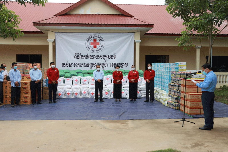 ខេត្តកណ្ដាល៖ សម្ភារៈជាគ្រឿងឧបភោគបរិភោគជាច្រើនមានដូចជា៖ អង្ករ ៦៦៦០គីឡូក្រាម ,មី ៣៣៣កេស ,ត្រីខកំប៉ុង ៣៣៣យួរ ,អំបិល ១៦៦,៥០គីឡូក្រាម ,ទឹកស៊ីអ៊ីវ ៣៣៣យួរ ,ទឹកសុទ្ធ ៣៣៣កេស ,ជែល ៣៣៣ដប ,ម៉ាស ៣៣៣០បន្ទះ ត្រូវបានសាខាកាកបាទក្រហមកម្ពុជាខេត្តកណ្ដាលផ្ដល់ជូនរដ្ឋបាលស្រុកលើកដែក សម្រាប់ចែកជូនប្រជាពលរដ្ឋក្នុងតំបន់បិទខ្ទប់ ចំនួន ៣៣៣គ្រួសារ ស្ថិតនៅភូមិពាមរាំងលើ ឃុំពាមរាំង ស្រុកលើកដែក ខេត្តកណ្ដាល នៅព្រឹកថ្ងៃទី៩ ខែមិថុនា ឆ្នាំ២០២១ ក្រោមអធិបតីភាពលោកជំទាវកិត្តិសង្គហបណ្ឌិត ឃួន សុដារី អនុប្រធានកាកបាទក្រហមកម្ពុជា តំណាងដ៏ខ្ពស់ខ្ពស់ សម្ដេចកិត្តិព្រឹទ្ធបណ្ឌិត ប៊ុន រ៉ានី ហ៊ុនសែន ប្រធានកាកបាទក្រហមកម្ពុជា និងដោយមានការចូលរួមពី ឯកឧត្តមបណ្ឌិត ម៉ៅ ភិរុណ ប្រធានក្រុមប្រឹក្សាខេត្ត និងឯកឧត្តម គង់ សោភ័ណ្ឌ អភិបាលខេត្តកណ្ដាល។