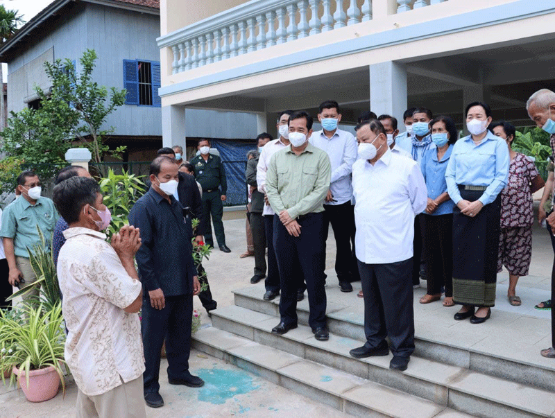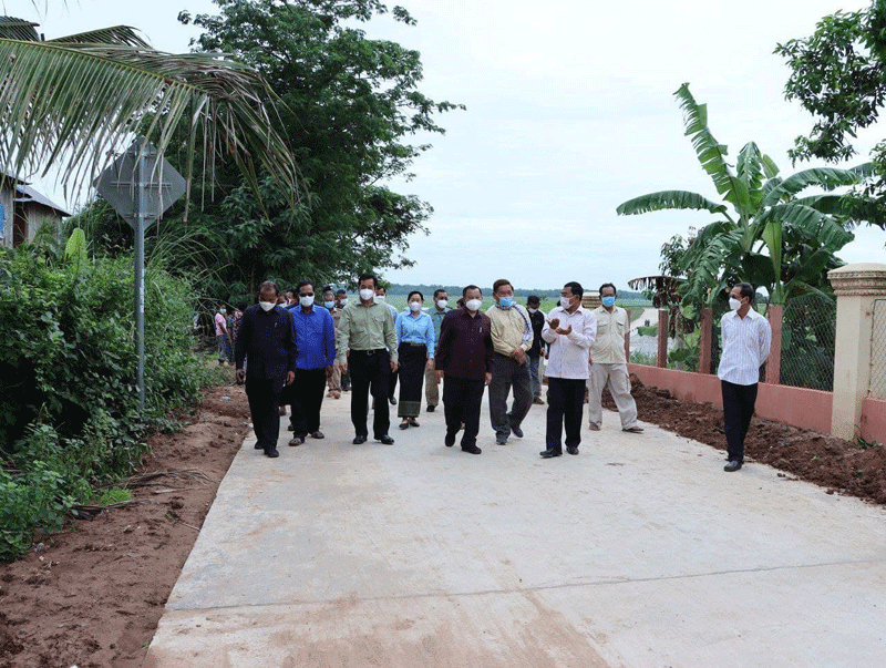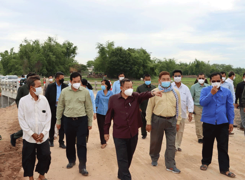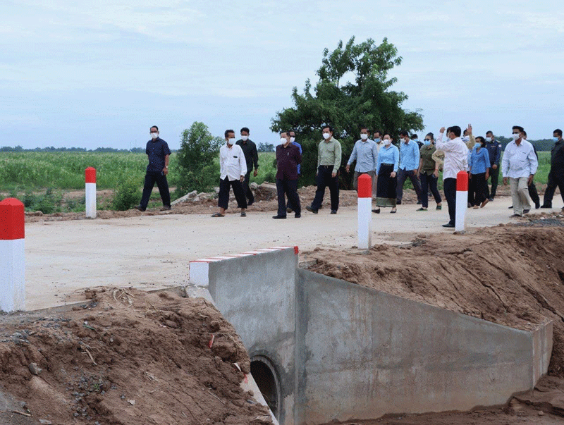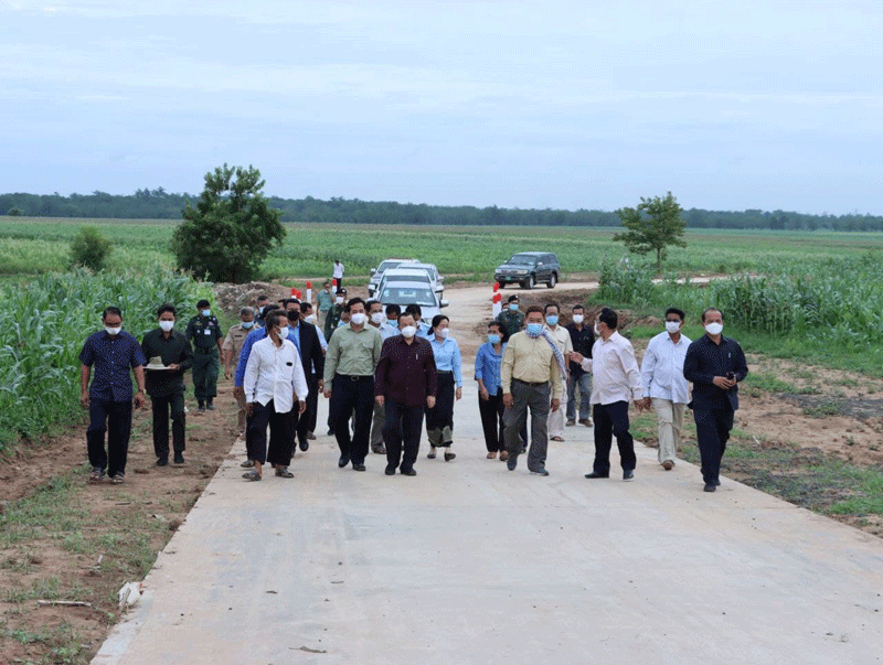 កំពង់ចាម : សម្តេចវិបុលសេនាភក្តី សាយ ឈុំ ប្រធានព្រឹទ្ធសភា អមដំណើរដោយឯកឧត្តម អ៊ុន ចាន់ដា អភិបាលខេត្តកំពង់ចាម និង ថ្នាក់ដឹកនាំ ជា ច្រើន រូប ទៀត នាព្រឹក ថ្ងៃទី ៩ ខែមិថុនា ឆ្នាំ ២០២១ បាន អញ្ជើញ ចុះពិនិត្យផ្លូវបេតុង ទំនប់បង្ហៀរ និង លូប្រអប់ ដែលជាសមិទ្ធផលថ្មីៗ សម្រាប់ បងប្អូន ប្រជាពលរដ្ឋ ក្នុង មូលដ្ឋានស្រុកកំពង់សៀម និង ស្រុកកោះសូទិន ខេត្តកំពង់ចាម ។