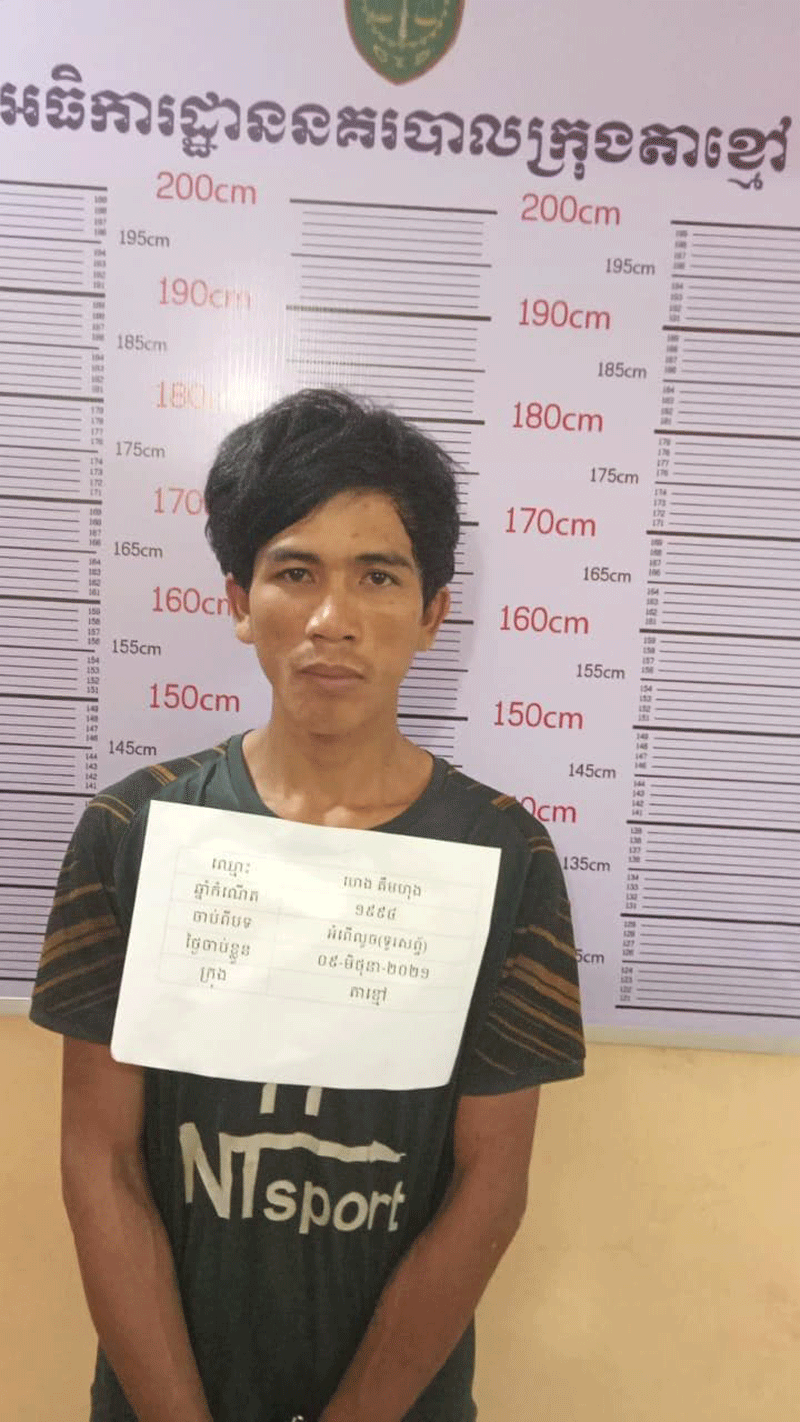 កណ្តាល ៖ បុរសម្នាក់ទើបចេញពីគុក មិនរាងចាលបានធ្វើសកម្មភាពលួចយកទូរសព្ទមួយគ្រឿងរបស់បុរសម្នាក់កំពុងដេកលង់លក់មិនបានបិទបង្អួច កាលពីថ្ងៃ០៨ខែមិថុនា ឆ្នាំ២០២១ វេលាម៉ោង០៤និង៣០នាទីទៀបភ្លឺ នៅចំណុចផ្ទះជនរងគ្រោះភូមិព្រែកហូរលិច សង្កាត់ព្រែកហូរ ក្រុងតាខ្មៅ ខេត្តកណ្តាល ត្រូវបានប៉ូលិសក្រុងតាខ្មៅឃាត់ខ្លួន។