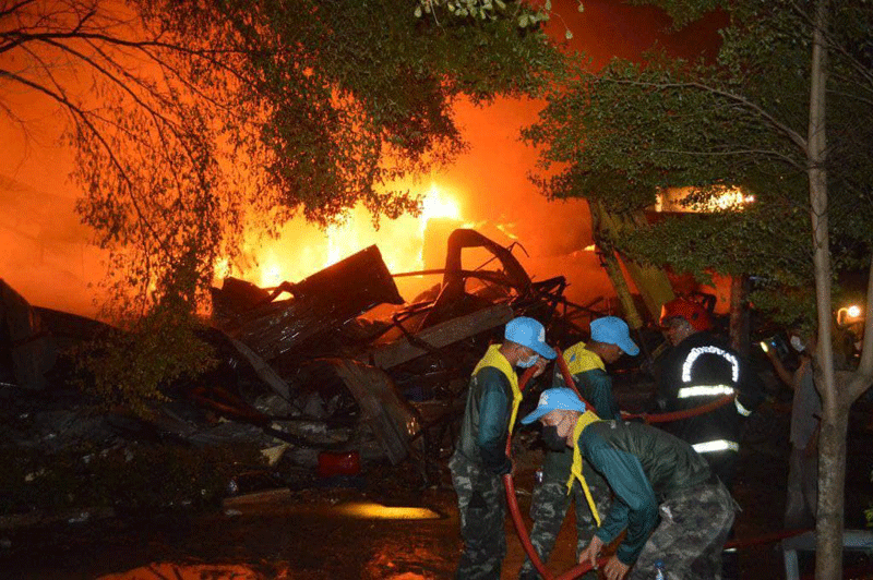 (បន្ទាយមានជ័យ)៖ តាមសេចក្តីរាយការណ៍បានឲ្យដឹងថា នៅវេលាម៉ោង 21.00នាទី ថ្ងៃទី14 ខែមិថុនា ឆ្នាំ 2021 ឃ្លាំងស្តុកខោអាវគីម កំរាលព្រំ កន្ទេល របស់អាជីវករខ្មែរនៅផ្សារ(ផៃលីន)ផ្សារ៉ុងក្លឿ ត្រូវបានអគ្គីសភ័យឆាបឆេះទាំងស្រុង ដែលស្ថិតនៅទល់មុខផ្សារBig-C នៅក្នុងភូមិដងងូ ឃុំប៉ារ៉ៃ ស្រុកអរញ្ញ ខេត្តស្រះកែវ ប្រទេសថៃ។