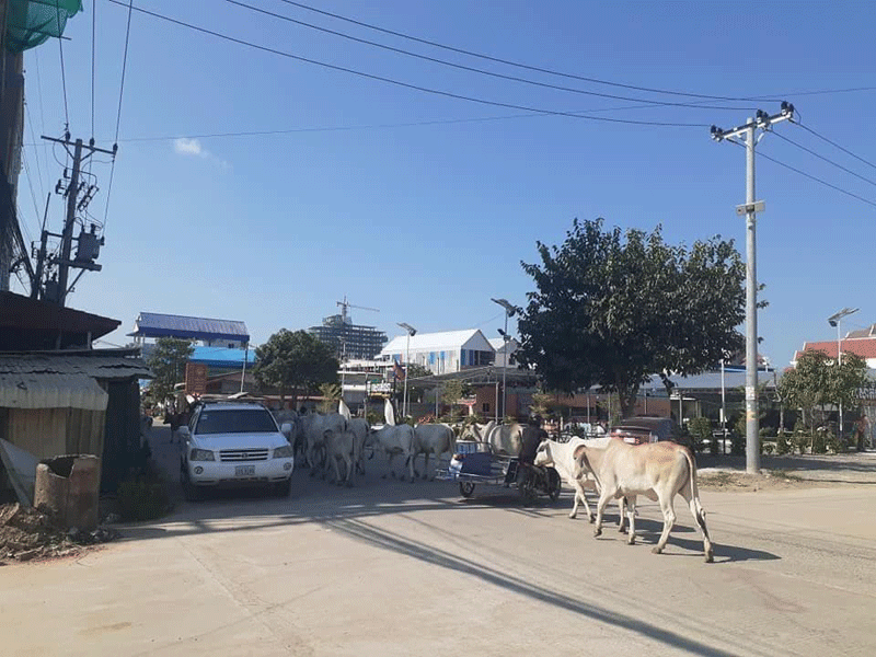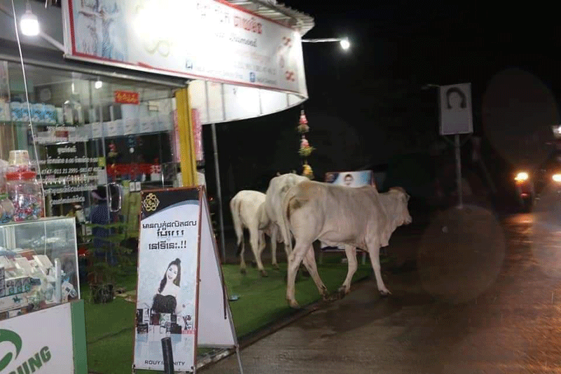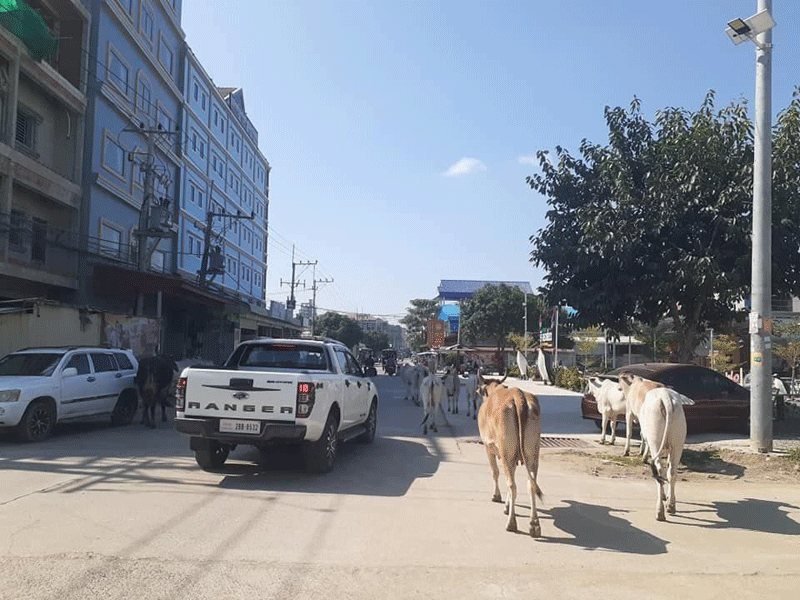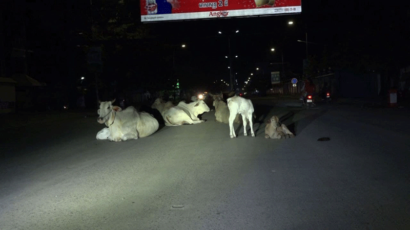 (បន្ទាយមានជ័យ)៖ សត្វគោនៅក្រុងប៉ោយប៉ែត ជារឿងដដែលៗរាប់ឆ្នាំមកហើយ នៅតែបន្ត ដើ រប្រសេកប្រសាចនៅលើដងផ្លូវសាធារណៈ និ ងទីប្រជុំជនទាំងយប់ទាំងថ្ងៃ ដែលធ្វើឱ្យប៉ះពាល់ ដល់សណ្តាប់ធ្នាប់របៀបរៀបរយសោភ័ណភាព និងសុវត្ថិភាពចរាចររបស់បងប្អូនប្រជាពលរដ្ឋ រដ្ឋបាលក្រុងប៉ោយប៉ែត បានសេចក្តីព្រមានអនុវត្តវិធានការច្បាប់ចំពោះម្ចាស់គោ។