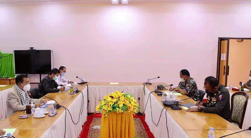 ខេត្តស្វាយរៀង៖នាព្រឹកថ្ងៃព្រហស្បតិ៍ ៨កើត ខែបឋមាសាឍ ឆ្នាំឆ្លូវ ត្រីស័ក ព.ស.២៥៦៥ ត្រូវនឹងថ្ងៃទី១៧ ខែមិថុនា ឆ្នាំ២០២១នេះ នៅសាលប្រជុំព្រៃបាសាក់ អគារ ខ សាលាខេត្ត ឯកឧត្តម ម៉ែន វិបុល អភិបាល នៃគណៈអភិបាលខេត្តស្វាយរៀង បានអញ្ជើញជួបប្រជុំជាមួយឯកឧត្តមឧត្តមសេនីយ៍ឯក ចាប ភក្តី មេបញ្ជាការរងកងទ័ពជើងគោក មេបញ្ជាការបញ្ជាការដ្ឋានទ័ពពិសេស នៃក្រសួងការពារជាតិ ដើម្បីពិភាក្សាការងារស្តីពីការរៀបចំផែនការចាក់វ៉ាក់សាំងជូនដល់បងប្អូនកម្មករ កម្មការិនីរោងចក្រ និងប្រជាពលដ្ឋក្នុងខេត្តស្វាយរៀង ដែលនិងប្រព្រឹត្តទៅនៅពេលខាងមុខនេះ។