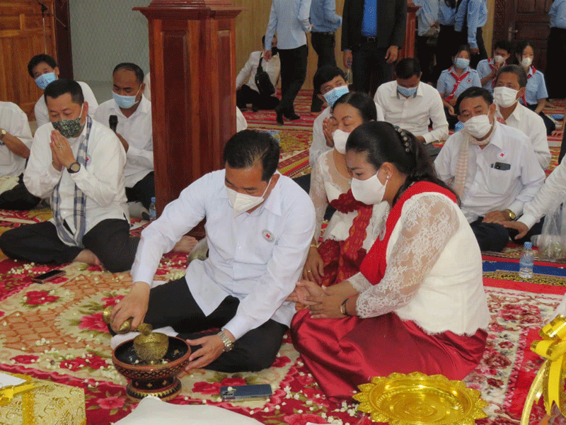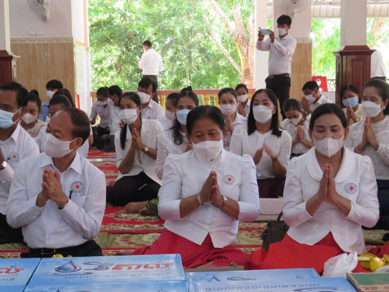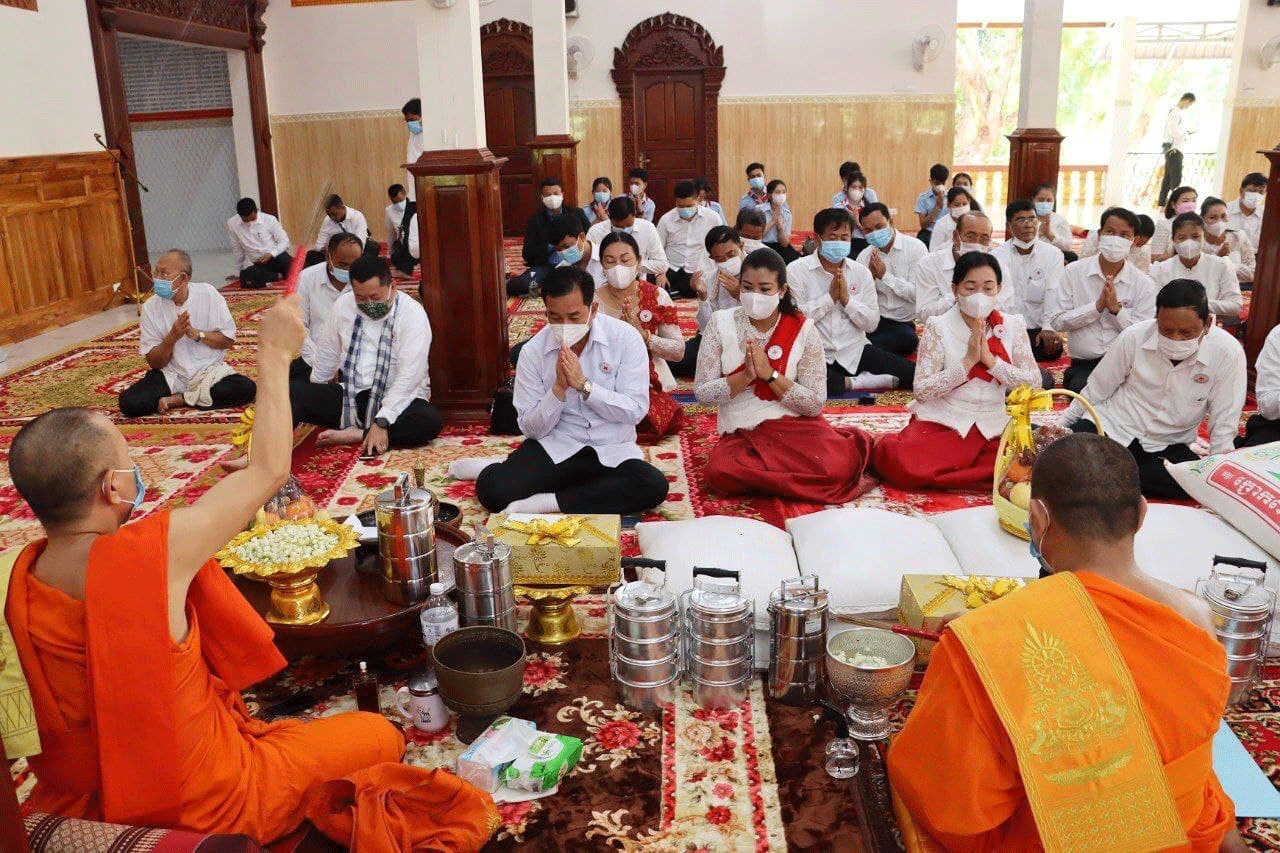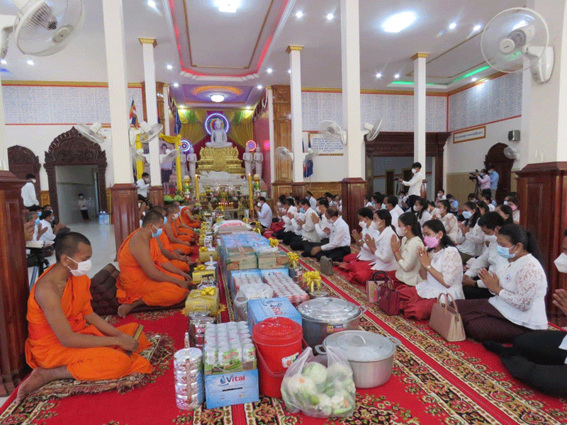 បន្ទាប់ពី ព្រះសីលសំវរ ប៊ត តាំង ឆេង ព្រះមេគណខេត្ត និងព្រះសង្ឃ ៧ អង្គ បាន សូត្រពុទ្ធជ័យមង្គល ចម្រើនព្រះបរិត្តទៅតាមទំនៀមទំលាប់ប្រពៃណីយសាសនា រួចមក ឯកឧត្តម អ៊ុនចាន់ដា និងលោកជំទាវ ព្រមទាំង ថ្នាក់ដឹកនាំ បានអញ្ជើញ វេរភត្តហារ ប្រគេនព្រះសង្ឃចំនួន ៧អង្គ នូវចង្ហាន់ ផ្លែឈើ សាដក និងបច្ច័យចំនួន ៥ម៉ឺនរៀល ដោយឡែក ព្រះចៅអធិការវត្ត បច្ច័យ ២០ម៉ឺនរៀល ។ ឧបត្ថម្ភ យុវជនកាកបាទក្រហមកម្ពុជា ១១នាក់ និងចាស់ព្រឹទ្ធាចារ្យ ចំនួន ៨៦ នាក់ ម្នាក់ៗ ថវិកា ២០,០០០រៀល។