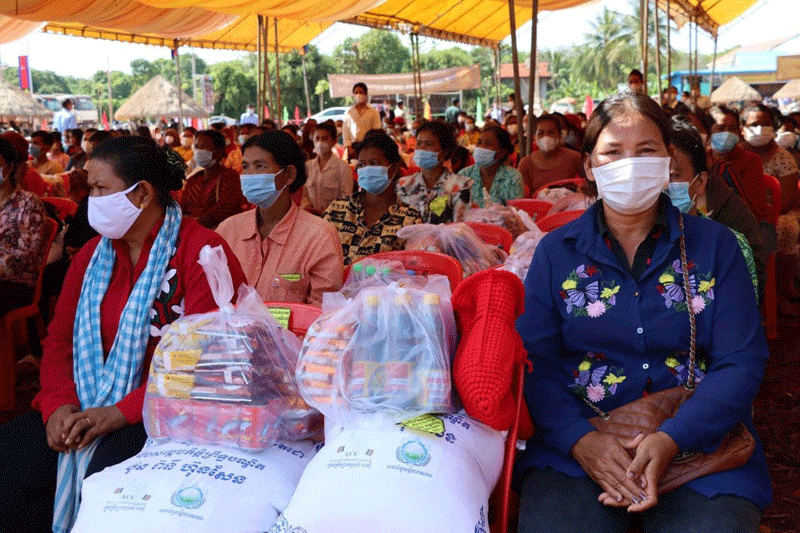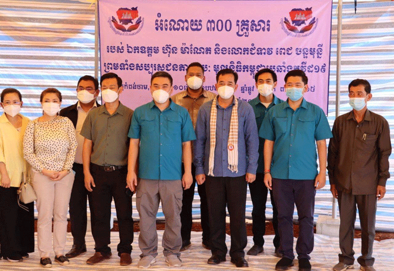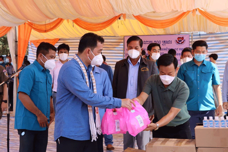 កំពង់ចាម : ឯកឧត្តម អ៊ុន ចាន់ដា អភិបាល ខេត្តកំពង់ចាម រួមនឹង មន្ត្រី ពាក់ព័ន្ធ នៅព្រឹកថ្ងៃទី១៩ ខែមិថុនា ឆ្នាំ២០២១ នេះ បាននាំអំណោយ ឯកឧត្តមបណ្ឌិត ហ៊ុន ម៉ាណែត ផ្ដល់ជូនប្រជាពលរដ្ឋ ចំនួន ៣០០គ្រួសារ ដែលកំពុងជួបការខ្វះខាតក្នុងជីវភាព ដោយសារការរាតត្បាត នៃជម្ងឺកូវីដ-១៩ ស្ថិតក្នុងឃុំអារក្សត្នោត ស្រុកស្ទឹងត្រង់ ខេត្តកំពង់ចាម ។ អំណោយដែលបានផ្ដល់ជូន ប្រជាពលរដ្ឋទាំង ៣០០គ្រួសារ ក្នុងមួយគ្រួសារទទួលបាន ÷ អង្ករ ២៥គីឡូក្រាម ត្រីខកំប៉ុង ១០កំប៉ុង មីចំនួន ១៥កញ្ចប់ ទឹកត្រី ១យួរ ទឹកស៊ីអ៉ីវ ១យួរ. ថ្នាំពេទ្យ ៥មុខ ម៉ាសចំនួន ២០ម៉ាស សាប៊ូ ១ដុំ និងជែលលាងដៃ ២ដបតូច ផងដែរ ។