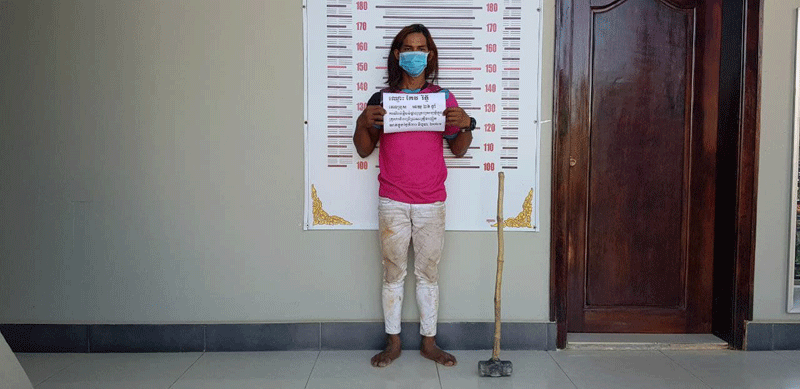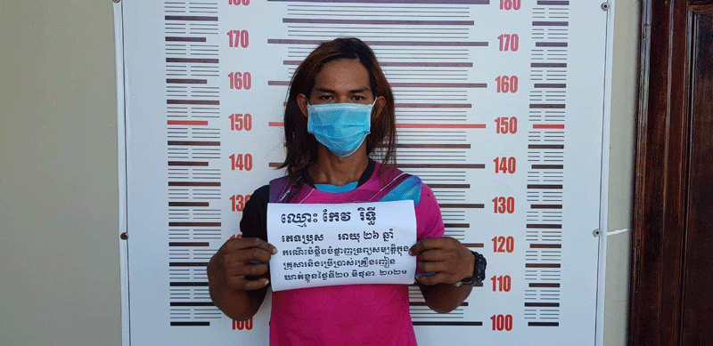 លោកវរសេនីយ៍ត្រី នួន នីណារ៉ូ មេបញ្ចាការមូលដ្ឋានកងរាជអាវុធហត្ថក្រុងប៉ោយប៉ែត បានប្រាប់ថា ក្រោយពីម្តាយបានដាក់ពាក្យបណ្តឹង លោកបានដាក់កម្លាំងចុះទៅឃាត់ខ្លួន ឃើញជនសង្ស័យកំពុងវាយបំផ្លាញសំយ៉ាបផ្ទះខ្លួន និងឃាត់ខ្លួននៅព្រឹកថ្ងៃទី20 ខែមិថុនា ឆ្នាំ2021 ចំណុចក្លឹបហាត់ប្រាណ ស្ថិតក្នុងភូមិមិត្តភាព សង្កាត់.ក្រុងប៉ោយប៉ែត។