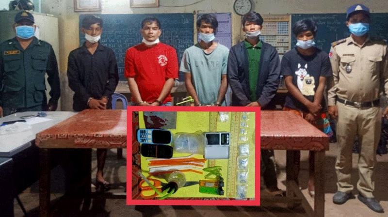 កណ្តាល ៖ ជនសង្ស័យ៥នាក់ត្រូវបានប៉ូលិសឃាត់ខ្លួននាថ្ងៃចន្ទ ទី២១ ខែមិថុនា ឆ្នាំ២០២១ វេលាម៉ោង៤និង៣០នាទីល្ងាច ក្នុងករណីជួញដូរ និង រក្សាទុកដោយខុសច្បាប់នូវសារធាតុញៀន (ម៉ាទឹកកក)នៅចំណុចភូមិរទាំងត្បូង ឃុំភូមិធំ ស្រុកកៀនស្វាយ ខេត្តកណ្តាល។ប៉ូលិសនិយាយថា ជនសង្ស័យ៥នាក់រួមមាន ១-ឈ្មោះ សុខ សូរ ភេទប្រុស អាយុ ២០ឆ្នាំ មានលំនៅភូមិរទាំងត្បូង ឃុំភូមិធំ ស្រុកកៀនស្វាយ ,២-ឈ្មោះ សោម សាក ភេទប្រុស អាយុ ១៧ឆ្នាំ មានលំនៅភូមិរទាំងត្បូង ឃុំភូមិធំ ស្រុកកៀនស្វាយ,៣-ឈ្មោះ ទុយ រតនា ភេទប្រុស អាយុ ១៦ឆ្នាំ មានលំនៅភូមិរទាំងត្បូង ឃុំភូមិធំ ស្រុកកៀនស្វាយ ខេត្តកណ្តាល, ៤-ឈ្មោះ អាង រចការ ភេទប្រុស ១៧ឆ្នាំ និង៥-ឈ្មោះ ចាយ សុីតូ ភេទប្រុស អាយុ ៣៧ឆ្នាំ ជនជាតិខ្មែរ មុខរបរ មិនពិតប្រាកដ មានលំនៅភូមិយកបាត្រ ១ សង្កាត់ក្បាលកោះ ខណ្ឌច្បារអំពៅ ។វត្ថុតាងចាប់យករួមមាន ម្សៅក្រាមពណ៌សថ្លាសង្ស័យសារធាតុញៀន ម៉ាទឹកកក ចំនួន ១០កញ្ចប់ (មធ្យម ០៥កញ្ចប់ តូច ០៥កញ្ចប់),ជញ្ជីងថ្លឹង ចំនួន ០១,ទូរសព្ទម៉ាក nokia ចុចពិល ០២គ្រឿង ,ថង់ក្រណាតចំនួន ០១,៥-កន្ត្រៃយ៍ចំនួន ០១,ម៉ូតូចំនួន ០១គ្រឿងម៉ាកmio ពណ៌ខៅ្មលាយលឿងទុំ ពាក់ស្លាកលេខ ភ្នំពេញ 1W.8881និងសម្ភារប្រើប្រាស់វេចខ្ចប់គ្រឿងញៀនមួយចំនួន។ប៉ូលិសបន្តថា ដំបូងកម្លាំងប៉ូលិសប៉ុស្តិ៍រដ្ឋបាលភូមិធំសហការជាមួយកម្លាំងប៉ូលិសជំនាញប្រឆាំងបទល្មើសគ្រឿងញៀនស្រុកកៀនស្វាយ បានល្បាតនៅក្នុងភូមិសាស្ត្រឃុំភូមិធំ លុះដល់ម៉ោងកើតហេតុខាងលើ។ លុះល្បាតដល់ចំណុចភូមិរទាំងត្បូង ឃុំភូមិធំ ស្រុកកៀនស្វាយ បានឃើញជនសង្ស័យ៤នាក់ កំពុងស្ទូចត្រីនៅស្រះទឹកក្នុងដីក្រុមហ៊ុនវឌ្ឍនៈ ស្ថិតនៅភូមិរទាំងត្បូង ឃុំភូមិធំ ស្រុកកៀនស្វាយ ដោយមានការសង្ស័យកម្លាំងសមត្ថកិច្ចបានធ្វើការឆែកឆេរក៏ឃើញមានថ្នាំញៀន៤កញ្ចប់តូច នៅក្នុងកញ្ចប់បារីម៉ាយសាវេនដែលជនសង្ស័យបោះចោលនៅលើស្មៅ។ ភ្លាមនោះកម្លាំងសមត្តកិច្ចក៏បានឃាត់ខ្លួនជនសង្ស័យទាំង ០៤នាក់ធ្វើការសួរនាំពេលនោះអ្នកទាំង ០៤នាក់ បានឆ្លើយសារភាពថា «នៅថ្ងៃទី២០ ខែមិថុនា ឆ្នាំ២០២១ វេលាម៉ោង ៩និង៣០នាទីយប់ពួកខ្លួនបានអង្គាសលុយគ្នាបានលុយចំនួនពីរមុឺនរៀល ឱ្យទៅឈ្មោះ សុខ សូ ភេទប្រុស យកទៅទិញថ្នាំញៀនពីឈ្មោះ ចាយ សុីតូ ភេទប្រុស អាយុ ៣៧ឆ្នាំ មានលំនៅភូមិយកបាត្រ ១ សង្កាត់ក្បាលកោះ ខណ្ឌច្បារអំពៅ រាជធានីភ្នំពេញក្នុងតម្លៃដប់មុឺនរៀល ដោយឱ្យលុយចំនួនពីរមុឺនរៀល ដោយនៅជំពាក់ប្រាំបីមុឺនរៀល ដើម្បីយកទៅប្រើប្រាស់ និង លក់បន្ត។ក្រោយពីទទួលចម្លើយសារភាពភ្លាម កម្លាំងសមត្ថកិច្ចប៉ុស្តិ៍រដ្ឋបាលភូមិធំ បានសហការជាមួយកម្លាំងប៉ូលិសផ្នែកប្រឆាំងគ្រឿងញៀនស្រុកកៀនស្វាយ បានចុះទៅឃាត់ខ្លួនឈ្មោះ ចាយ សុីតូ ភេទប្រុស អ