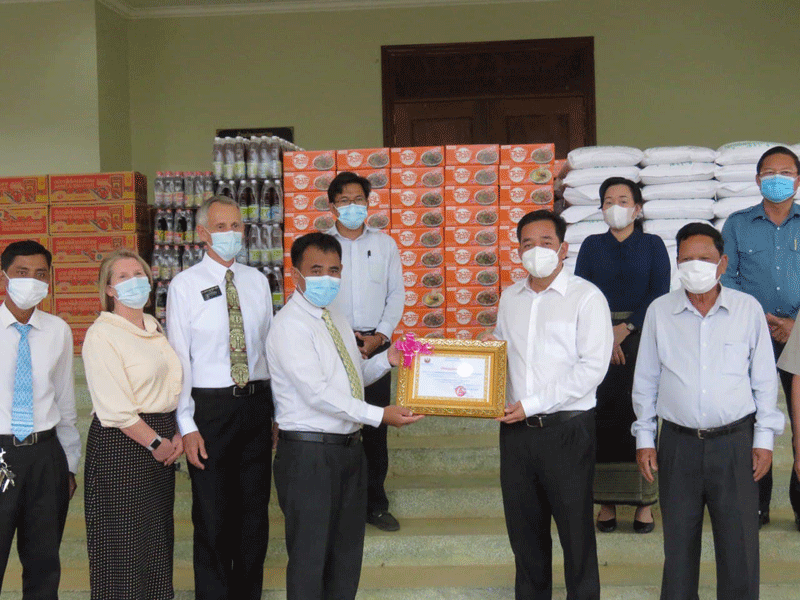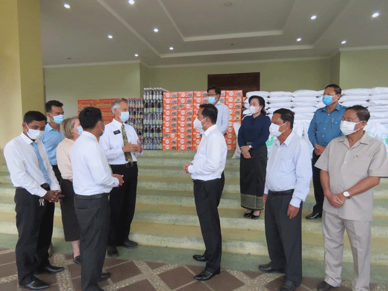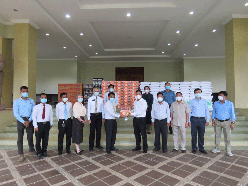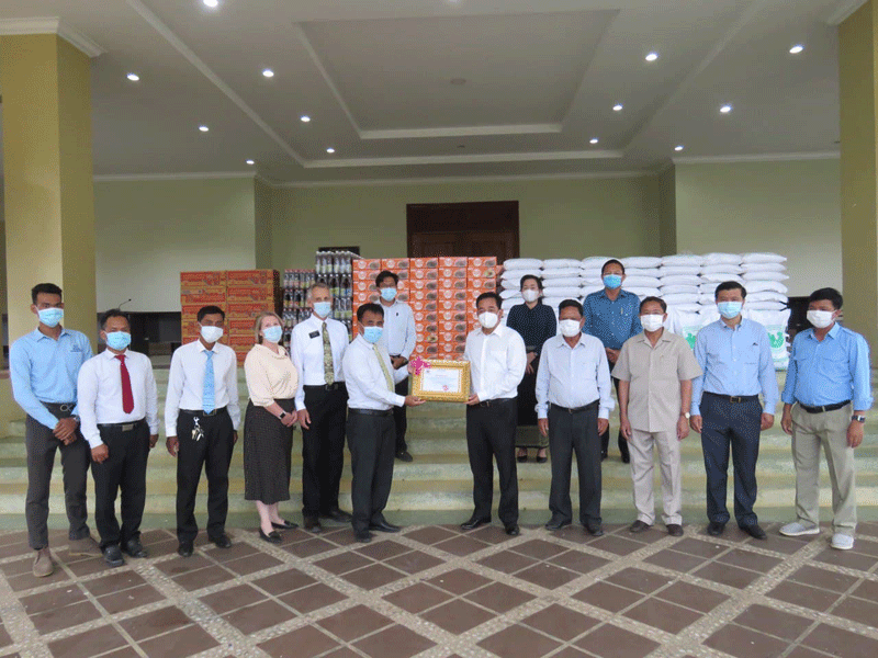 កំពង់ចាម : ឯកឧត្តម អ៊ុន ចាន់ដា អភិបាលខេត្តកំពង់ចាម និង ជា ប្រធាន គណកម្មការ ខេត្ត ប្រយុទ្ធ ប្រឆាំង នឹង ជំងឺ កូវីដ -១៩ និង ឯកឧត្ដម ខ្លូត ផន ប្រធាន ក្រុមប្រឹក្សា ខេត្ត រួមនឹង អភិបាល រង ខេត្ត នាល្ងាច ថ្ងៃទី ២៣ ខែមិថុនា ឆ្នាំ ២០២១ នេះ បាន អញ្ជើញ ទទួល អំណោយ ជាស្បៀងអារហារ ពី សមាគមសាសនាចក្រនៃព្រះយេស៊ូគ្រីស្ទនៃពួកបរិសុទ្ធថ្ងៃចុងក្រោយ ប្រចាំនៅកម្ពុជា ដែល សរុប ជា ថវិកា ជិត ១០ម៉ឺន ដុល្លារ ដេីម្បី ចូលរួម ជាមួយ រាជរដ្ឋាភិបាល ខណៈ កម្ពុជា ស្ថិត ក្នុង ដំណាក់កាល រួមគ្នា ប្រយុទ្ធ ប្រឆាំង នឹងជំងឺ កូវីដ-១៩ ។