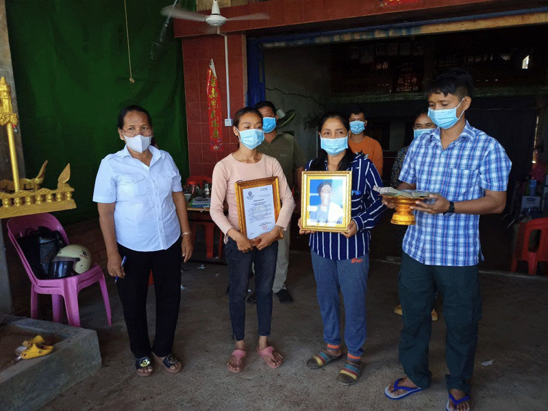 - លោកស្រី ហ៊ឹម ហៀក ត្រូវជាប្រពន្ធ របស់សពអតីតយុទ្ធជនឈ្មោះ ព្រំ ម៉េត អតីត យោធិនពិការអត្តលេខ(HA87001195) ទទួលមរណភាព នៅភូមិ ចំបក់ខ្ពស់ ឃុំស្វាយរំពារ ស្រុកកំពង់លែង ។ 2. លោកស្រី ឡុង ឌីសាវ៉ែន ត្រូវជាកូន របស់សពអតីត យុទ្ធជនឈ្មោះ ដោ សារ៉េត អតីតគ្រួសារនគបាលពលី អត្តលេខ (SB02000122) ទទួលមរណភាព នៅភូមិកំពង់បឹង ឃុំកំពង់ហៅ ស្រុកកំពង់លែង ។