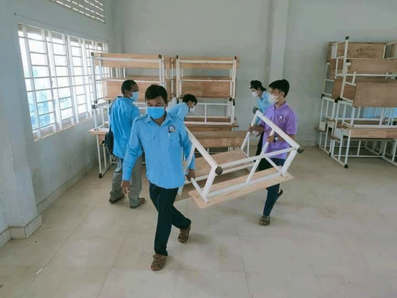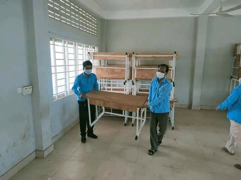 ព្រះវិហារ៖ នៅព្រឹកថ្ងៃ ទី២៤ ខែមិថុនា ឆ្នាំ២០២១នេះ សហភាព សហព័ន្ធយុវជន កម្ពុជា ខេត្តព្រះវិហារ ដោយមានការចង្អុលបង្ហាញពីសំណាក់ ឯកឧត្ដម ប្រាក់ សុវណ្ណ អភិបាល នៃគណៈអភិបាលខេត្តព្រះវិហារ និងក្រោមការដឹកនាំរបស់ឯកឧត្ដម យុង គឹម ហ៊ាន ប្រធាន ស.ស.យ.ក. ខេត្តព្រះវិហារ ឯកឧត្តម អនុប្រធាន លោក លោកស្រី ប្រធាន អនុប្រធាន សមាជិក សមាជិកា កម្លាំងស.ស.យ.ក.ប្រចាំសាលាខេត្ត មន្ទីរអន្តរៈវិស័យ អង្គភាពជុំវិញខេត្ត បាន ចូលរួមបន្តរៀបចំបោសសម្អាត និងរៀបចំគ្រែ នៅអាគារសិក្សា វិទ្យាល័យ ជា ស៊ីម ត្បែងមានជ័យ ក្រុង ព្រះវិហារ ខេត្តព្រះវិហារ ដើម្បីត្រៀមសម្រាប់ទុក ជាមណ្ឌលសម្រាកព្យាបាលជូនដល់បងប្អូនដែលមានផ្ទុកជំងឺកូវីដ-១៩ នៅក្នុងភូមិសាស្រ្ត ខេត្តព្រះវិហារ។
