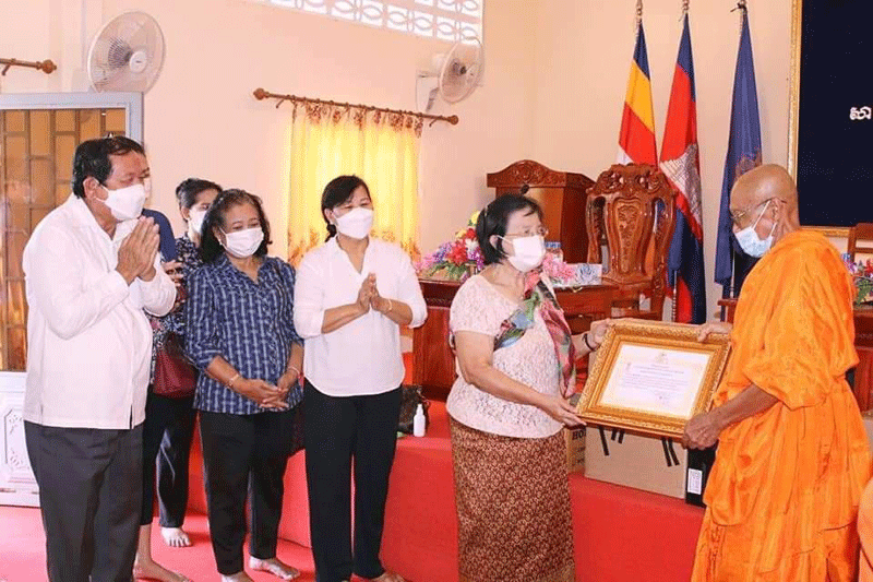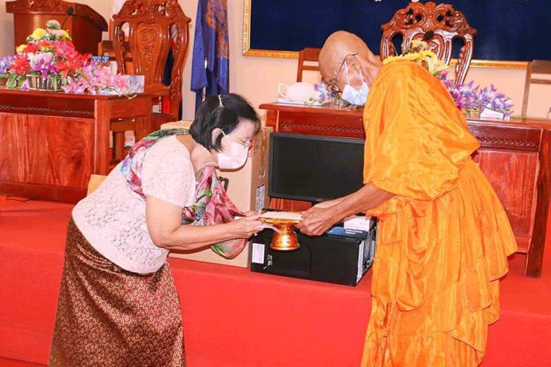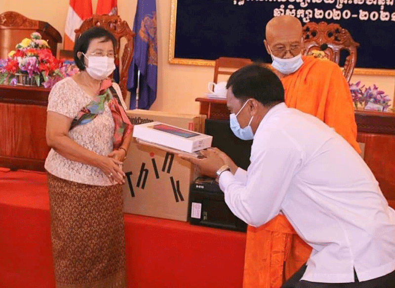 ក្នុងពេលនោះលោកជំទាវក៏បានប្រគល់ជូនកុំព្យុទ័រចំនួន០២គ្រឿងនិងថេប្លេតចំនួន០៨គ្រឿងនិង កុំព្យទ័រ០១គ្រឿងនិងថេប្លេតចំនួន០៨គ្រឿងនិងថវិកាចំនួន៥០០ដុល្លាដល់គណៈគ្រប់គ្រងសាលាពុទ្ធិកសាកលវិទ្យាល័យព្រះសីហនុរាជ និង ប្រគេនជូនកុំព្យួទ័រចំនួន០១គ្រឿង ដល់សាលាគណ ខេត្តកំពង់ឆ្នាំង និងប្រគេនបច្ច័យបួនដល់ព្រះមេគណខេត្តចំនួន៣០០ដុល្លាផងដែរ ៕ដោយ សុក្ខារិន