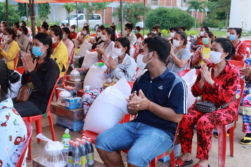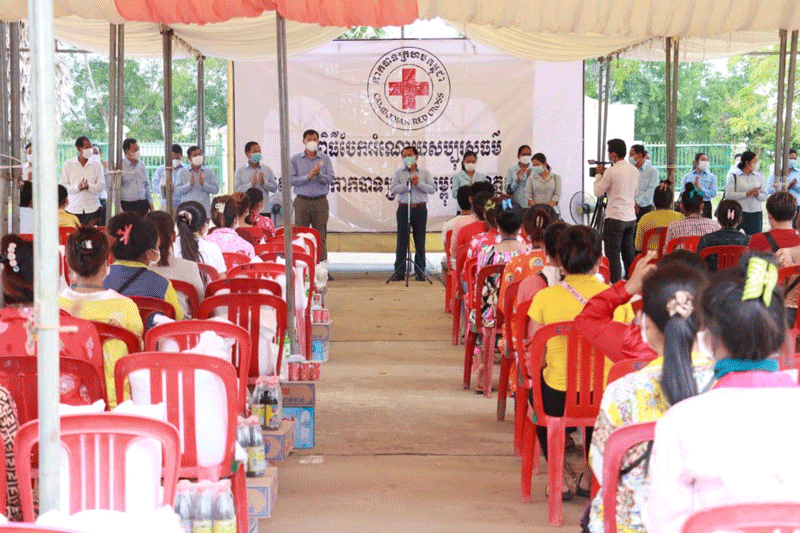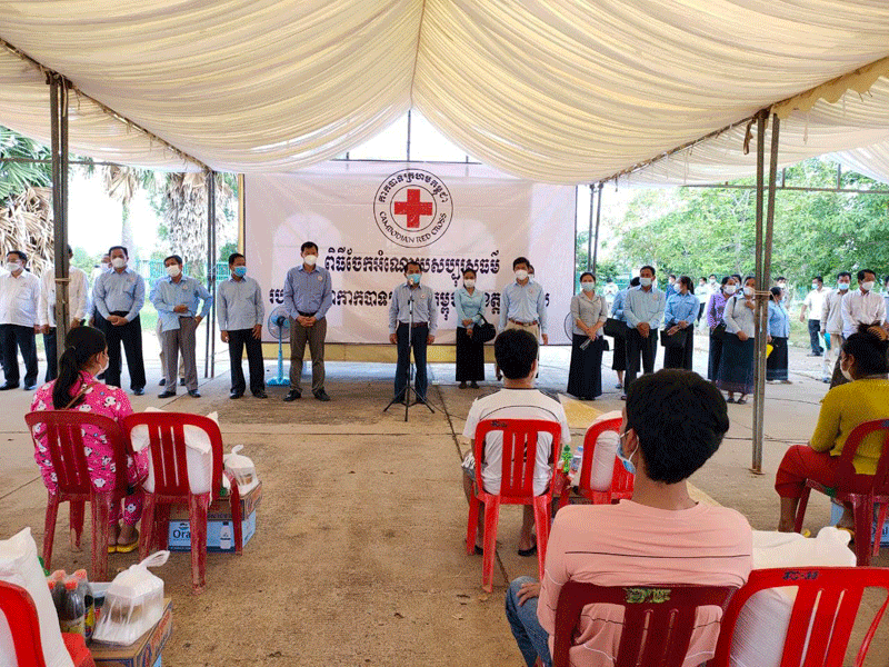 ខេត្តកណ្ដាល៖ ប្រជាពលរដ្ឋដែលបានជាសះស្បើយពីជំងឺកូវីដ-១៩ នៅមណ្ឌលព្យាបាល កម្រិតស្រាល វិទ្យាល័យ ហ៊ុន សែន រ៉ូតា ស្ថិតនៅក្នុងស្រុកខ្សាច់កណ្ដាល ខេត្តកណ្ដាល ចំនួន ១១០ នាក់ ទទួលបានអំណោយមនុស្សធម៌ពី សាខាកាកបាទក្រហមកម្ពុជាខេត្តកណ្ដាល នៅរសៀលថ្ងៃទី២៤ ខែមិថុនា ឆ្នាំ២០២១ ក្រោមអធិបតីភាពឯកឧត្តម គង់ សោភ័ណ្ឌ អភិបាលខេត្ត និងជាប្រធានគណៈកម្មាធិការកាកបាទក្រហមកម្ពុជាខេត្តកណ្ដាល។