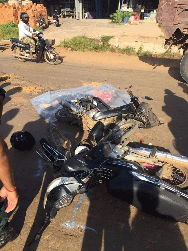 សមត្ថកិច្ចនគបាលស្រុករលាប្អៀរករណីគ្រោះថ្នាក់ចរាចរណ៍ខាងលើនេះបានកើតឡើងរវៀងម៉ូតូ២គ្រឿងបុកគ្នាក្នុងដំណើរច្រាសទិសគ្នាដោយម៉ូតូ១គ្រឿងម៉ាកហុងដាសេ១២៥ពណ៍ខ្មៅ០១៦ពាកើស្លាក់លេខ1H2839បើកបរដោយឈ្មោះសុខទិត ភេទប្រុសអាយុ៤១ឆ្នាំរសនៅភូមិត្រពាំងពោធ៍.ឃុំពង្រ.ស្រុករលាប្អៀរបើកបរក្នុងទិសដៅពីជើងទៅត្បូងក្នុងដំណើរច្រាស់ទិសគ្នានិងម៉ូតូ១គ្រឿងទៀតម៉ាកហុងដាសេ១២៥ពណ៍ខ្មៅ០១៣ពសក់ស្លាលេខកំពង់ឆ្នាំង1C.99.98.បើកបរដោយឈ្មោះ ឆៃស្រីមុំ ភេទស្រីអាយុ៣៨ឆ្នាំរសនៅក្នុងភូមិទឹកចេញ.ឃុំជើងគ្រាវ.ស្រុករលាប្អៀរត្រូវបានគៀបណ្តាលអោយដួលទាំង២គ្រឿងតែម្តង ។